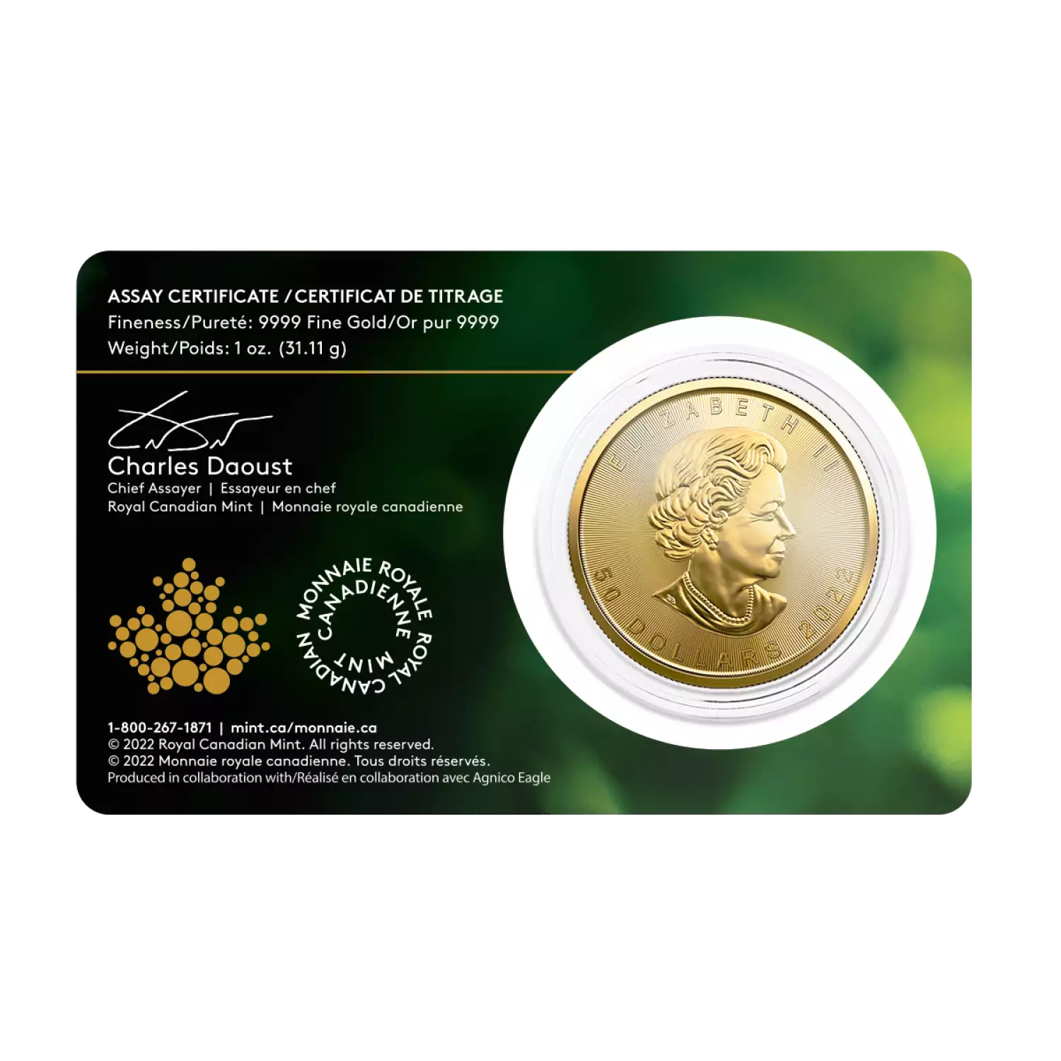 The rich history, popularity and enhanced security features of the 2022 1 oz Canadian Gold Maple Leaf coin make it a perfect investment for first-timers and veteran precious metals investors.