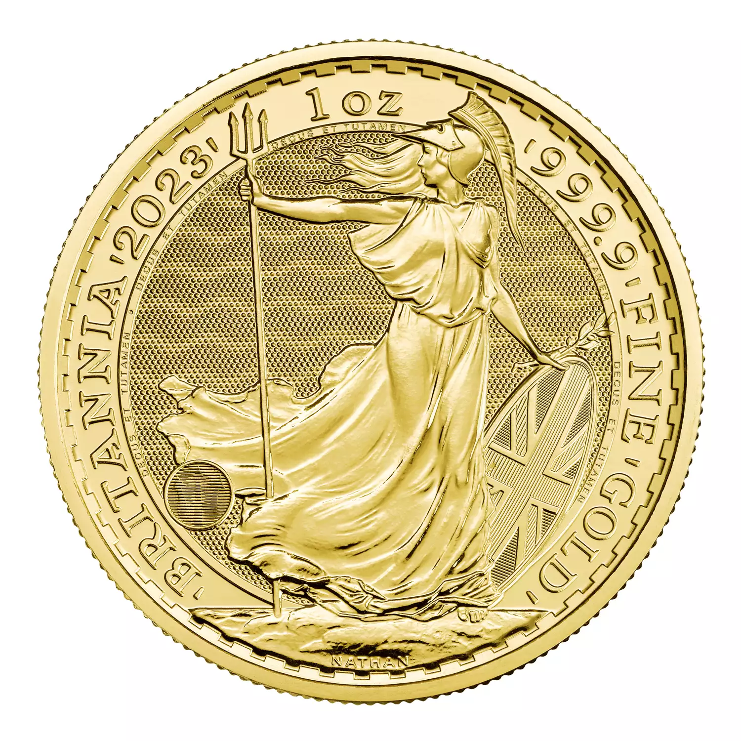 The British Gold Britannia continues to provide beauty and reliability. The 1 oz 2023 British Gold Britannia is one of the most popular investment coins in the world. With the image of Britannia adorning the reverse it remains one of the most strikingly beautiful gold coins among popular investment grade gold. This stunning gold coin contains 1 troy ounce of .9999 fine gold. The obverse pictures Queen Elizabeth II while the reverse is showing the design of Philip Nathan, picturing the country as a feminine figure.