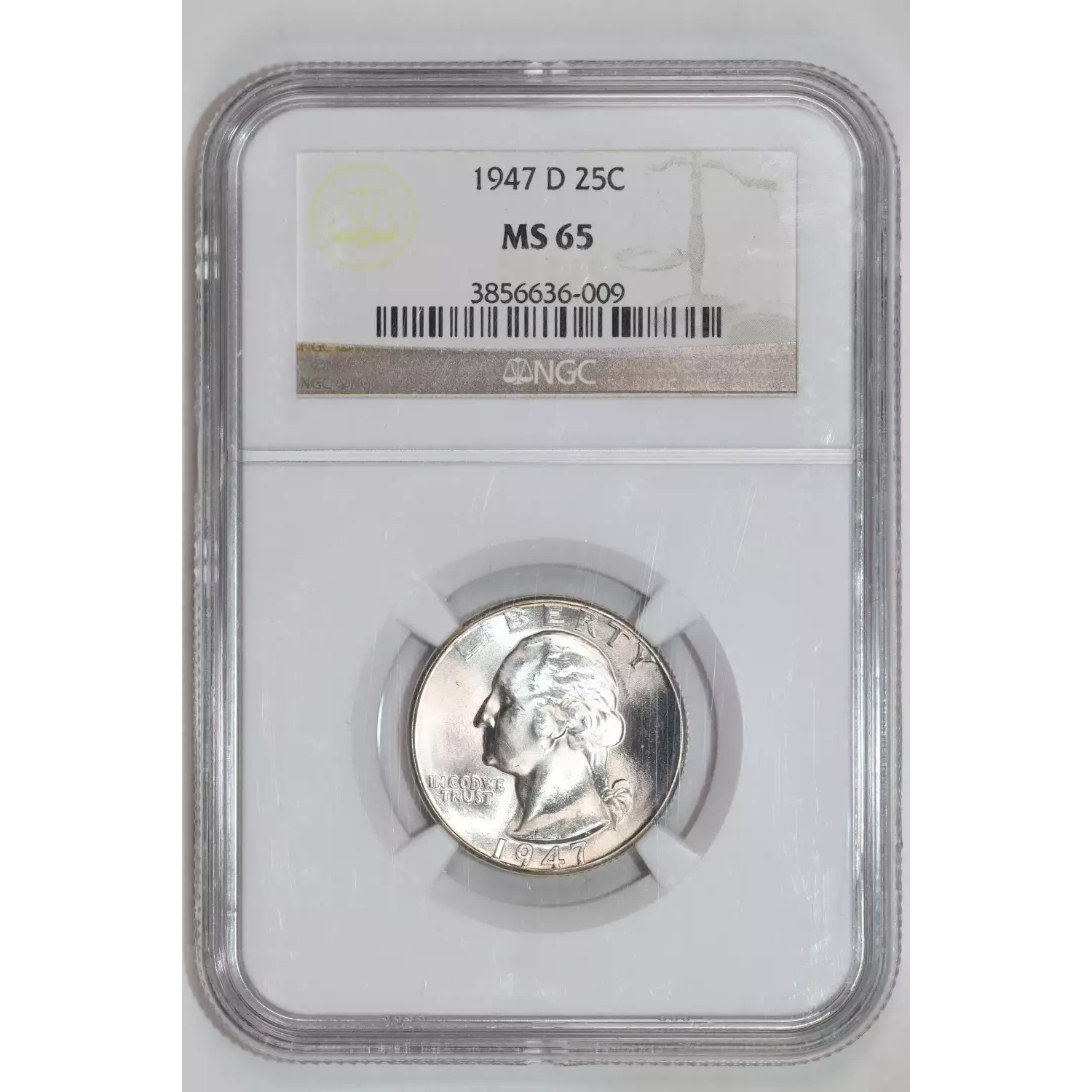 1947-D Quarter Dollars Silver Coinage NGC MS-65