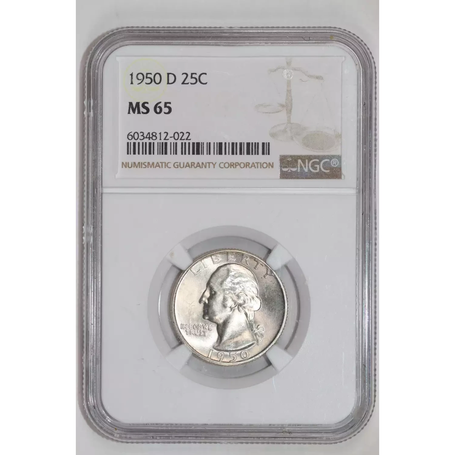 1950-D Quarter Dollars Silver Coinage NGC MS-65