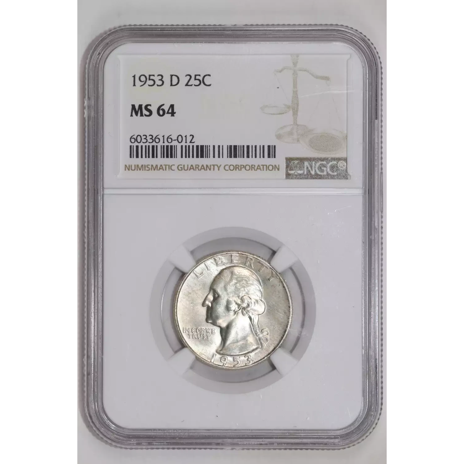 1953-D Quarter Dollars Silver Coinage NGC MS-64
