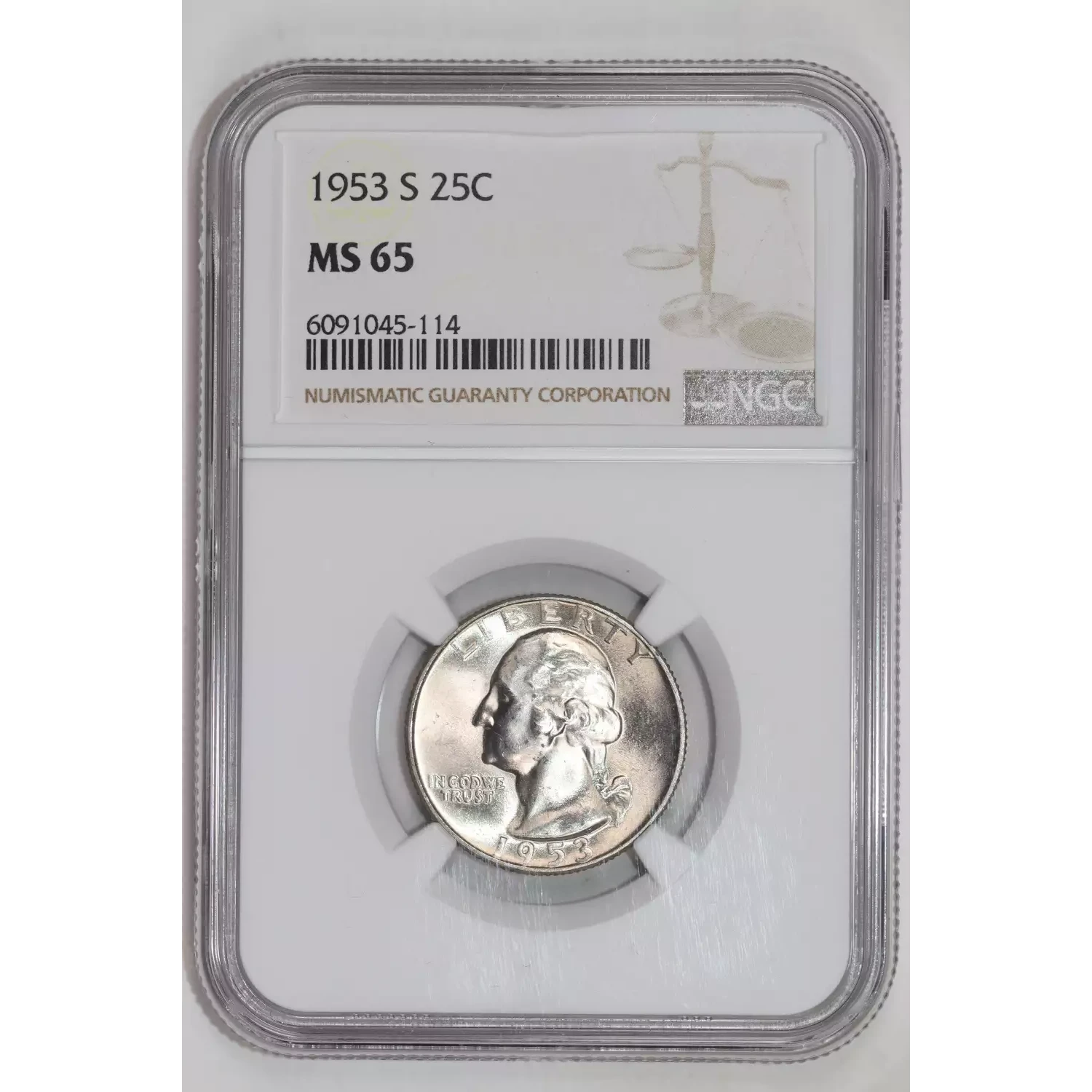 1953-S WASHINGTON QUARTER NGC MS65