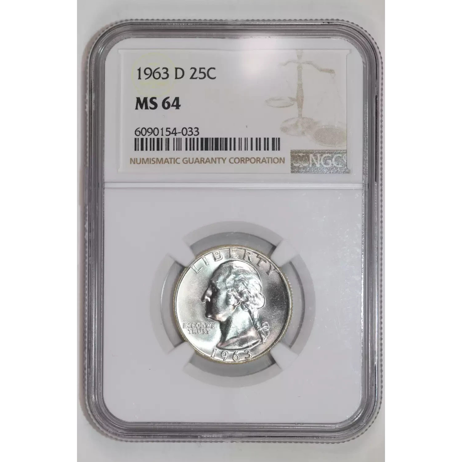 1963-D Quarter Dollars Silver Coinage NGC MS-64