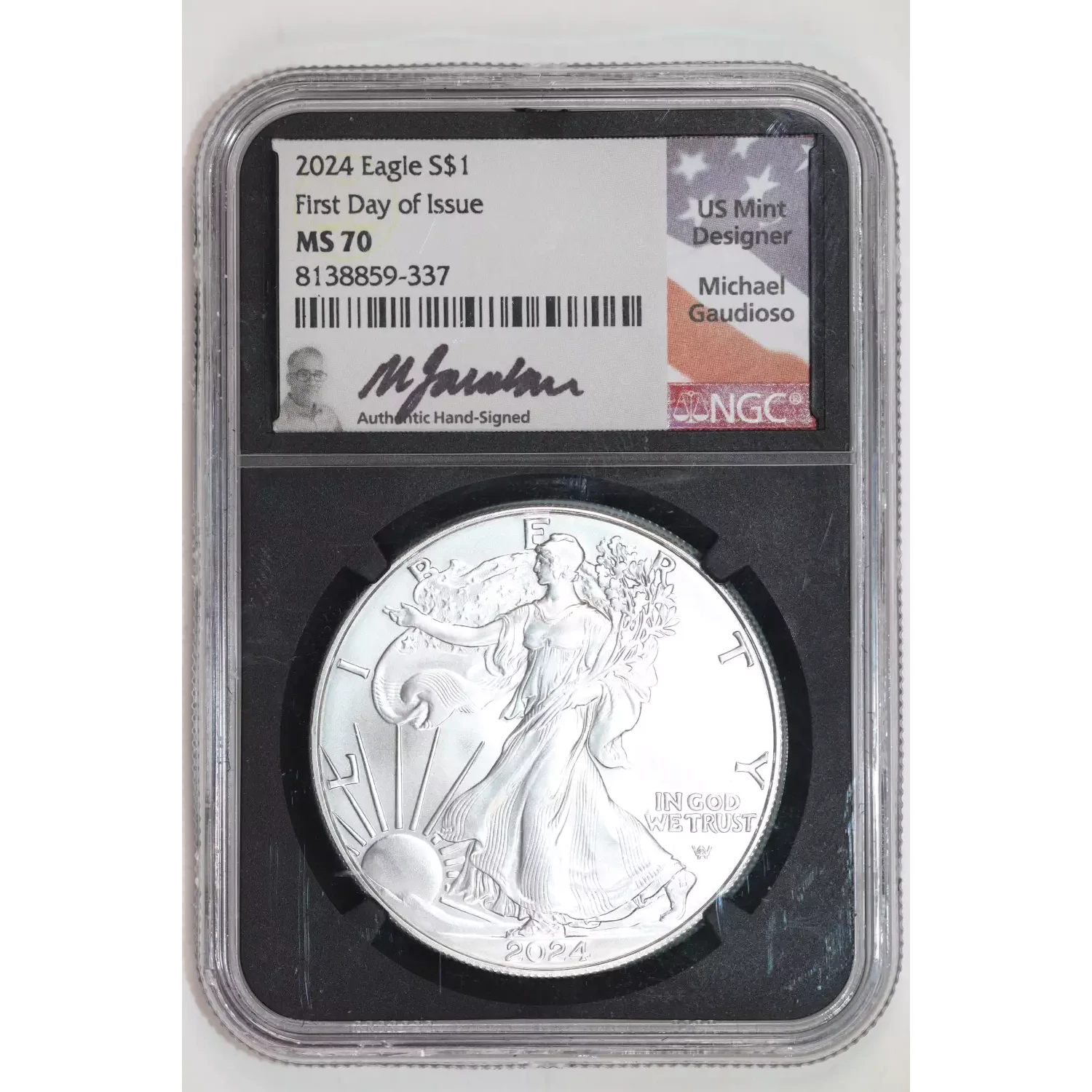 2024 SILVER EAGLE NGC MS70 FIRST DAY OF ISSUE GAUDIOSO SIGNATURE
