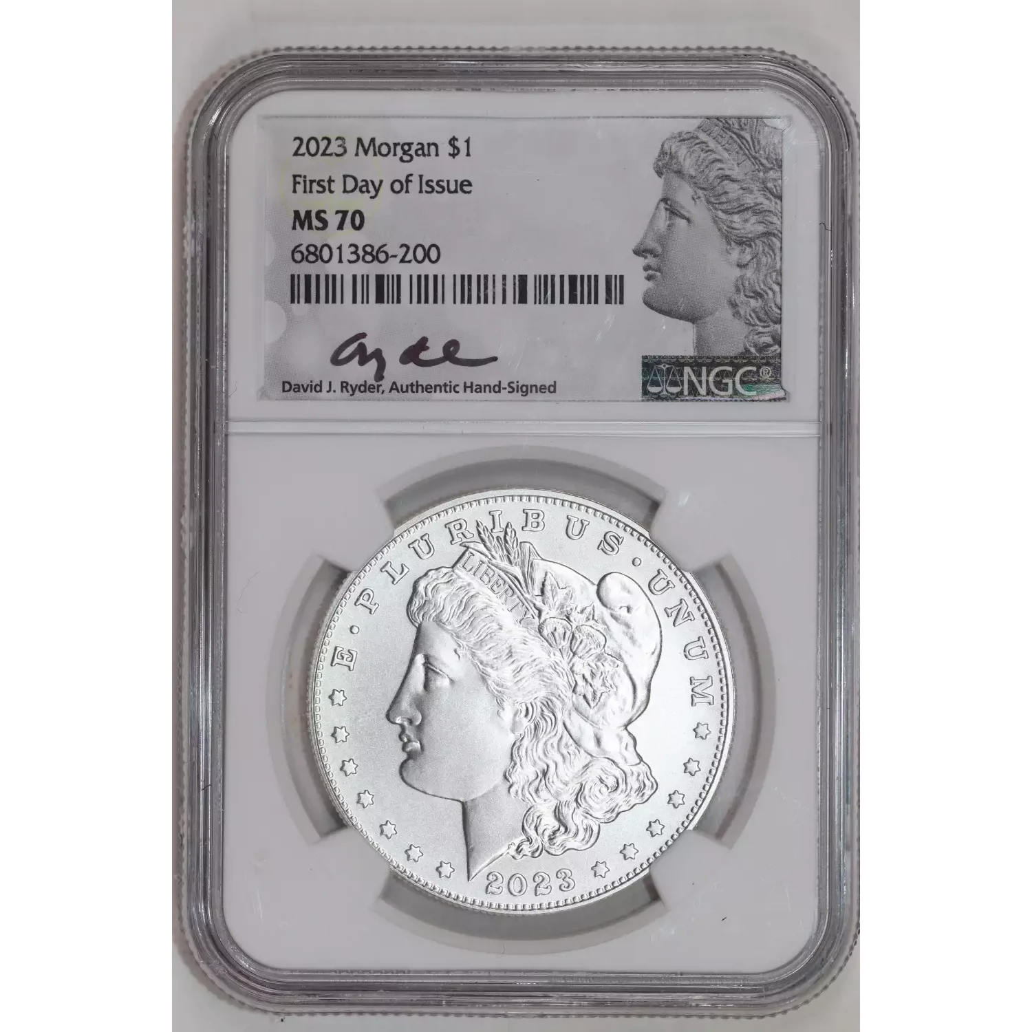 2023 MORGAN DOLLAR NGC MS70 FIRST DAY OF ISSUE RYDER SIGNATURE