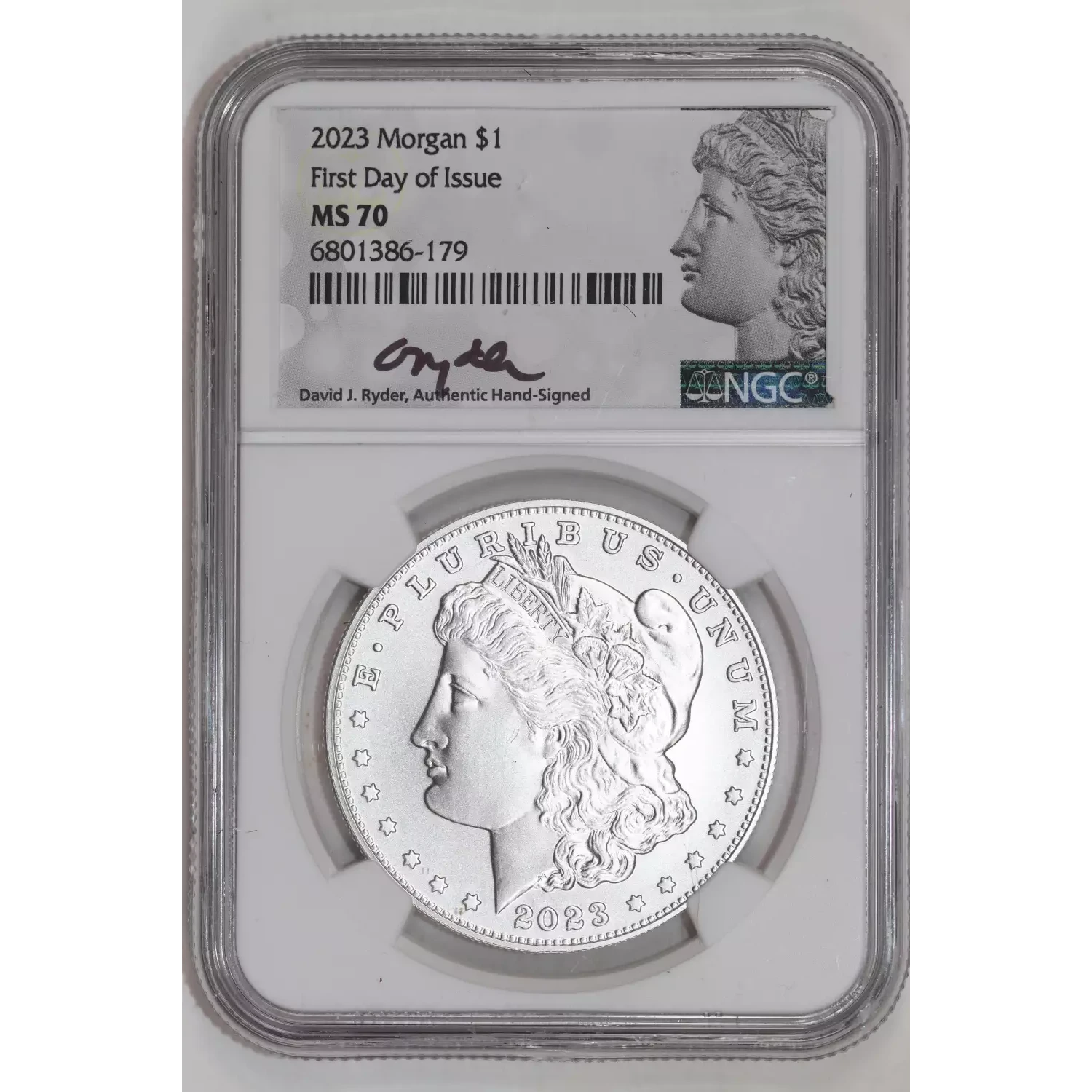 2023 MORGAN DOLLAR NGC MS70 FIRST DAY OF ISSUE RYDER SIGNATURE