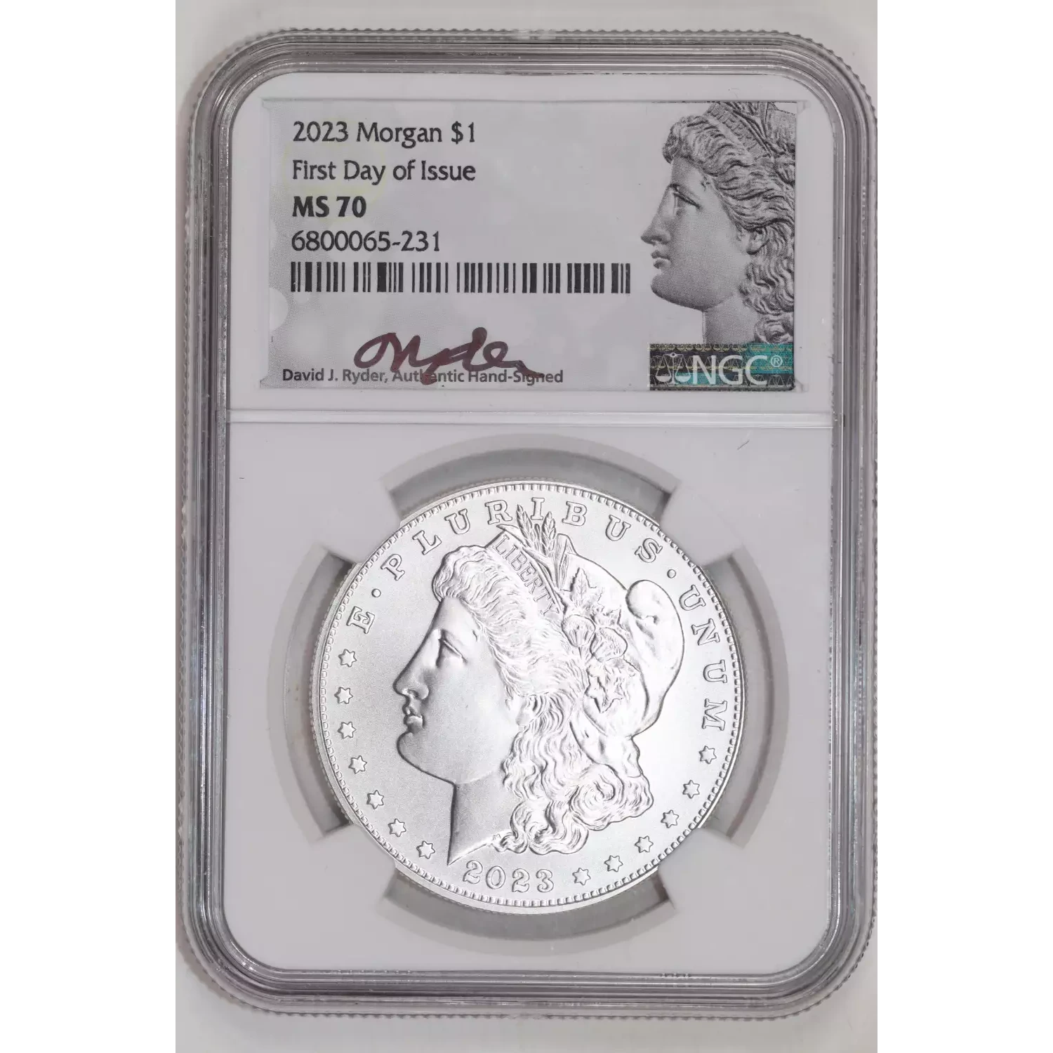2023 MORGAN DOLLAR NGC MS70 FIRST DAY OF ISSUE RYDER SIGNATURE