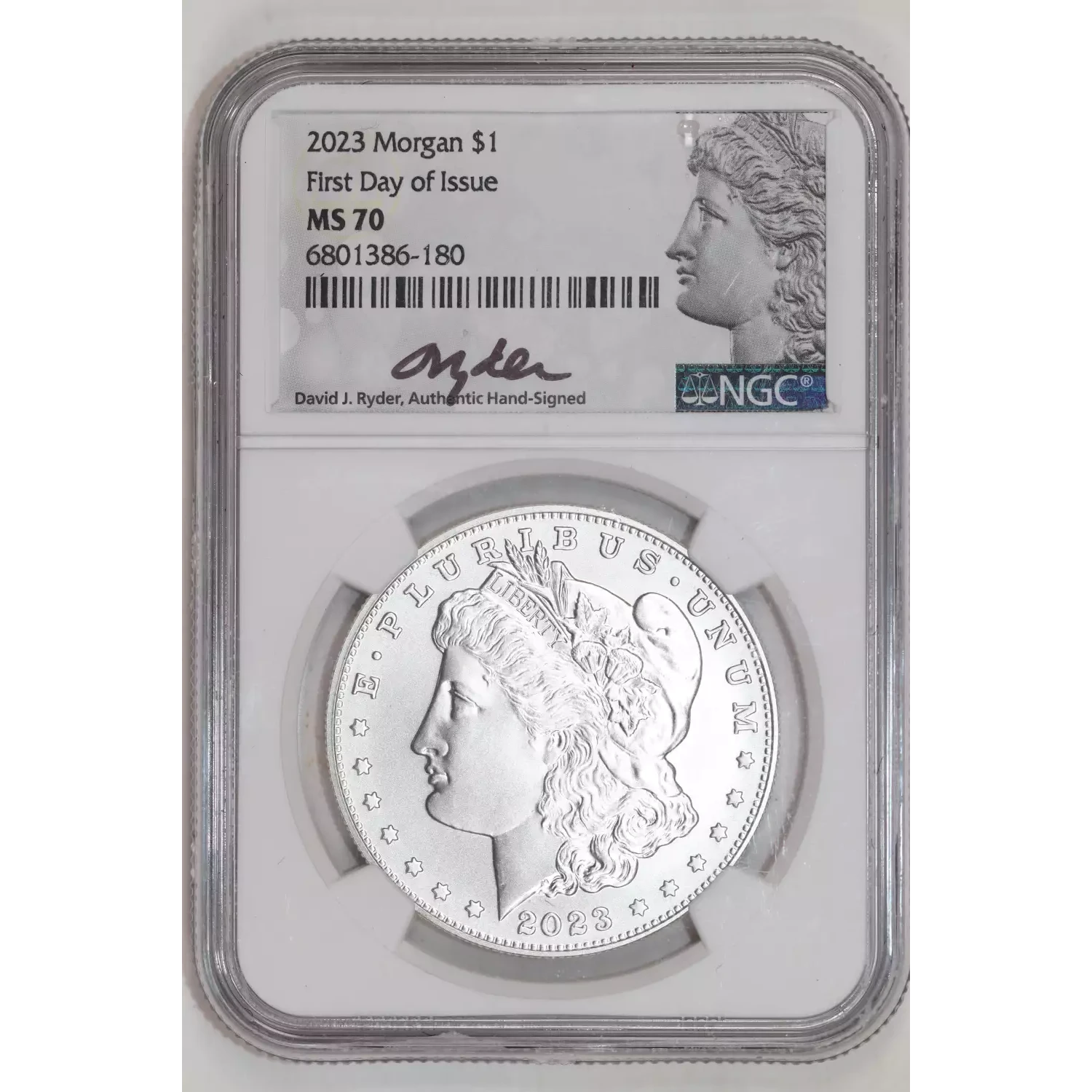 2023 MORGAN DOLLAR NGC MS70 FIRST DAY OF ISSUE RYDER SIGNATURE