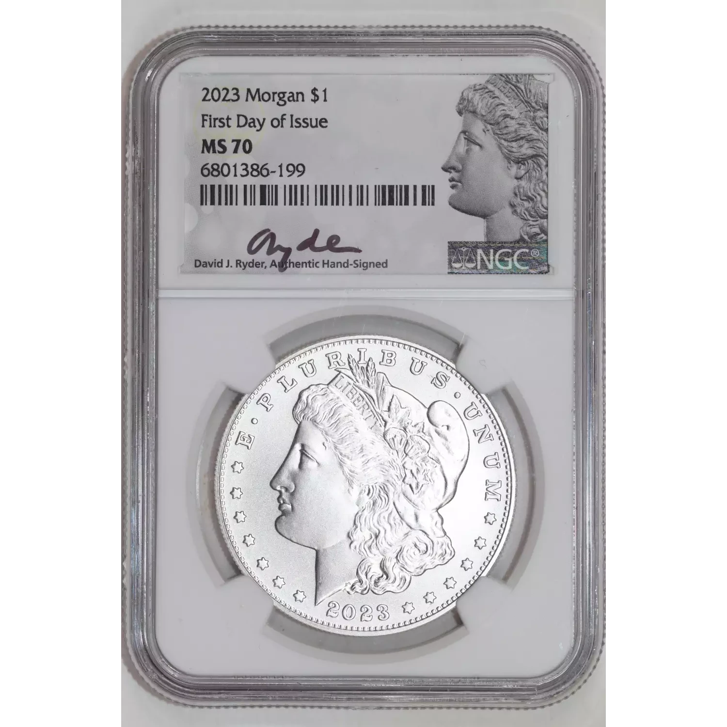 2023 MORGAN DOLLAR NGC MS70 FIRST DAY OF ISSUE RYDER SIGNATURE