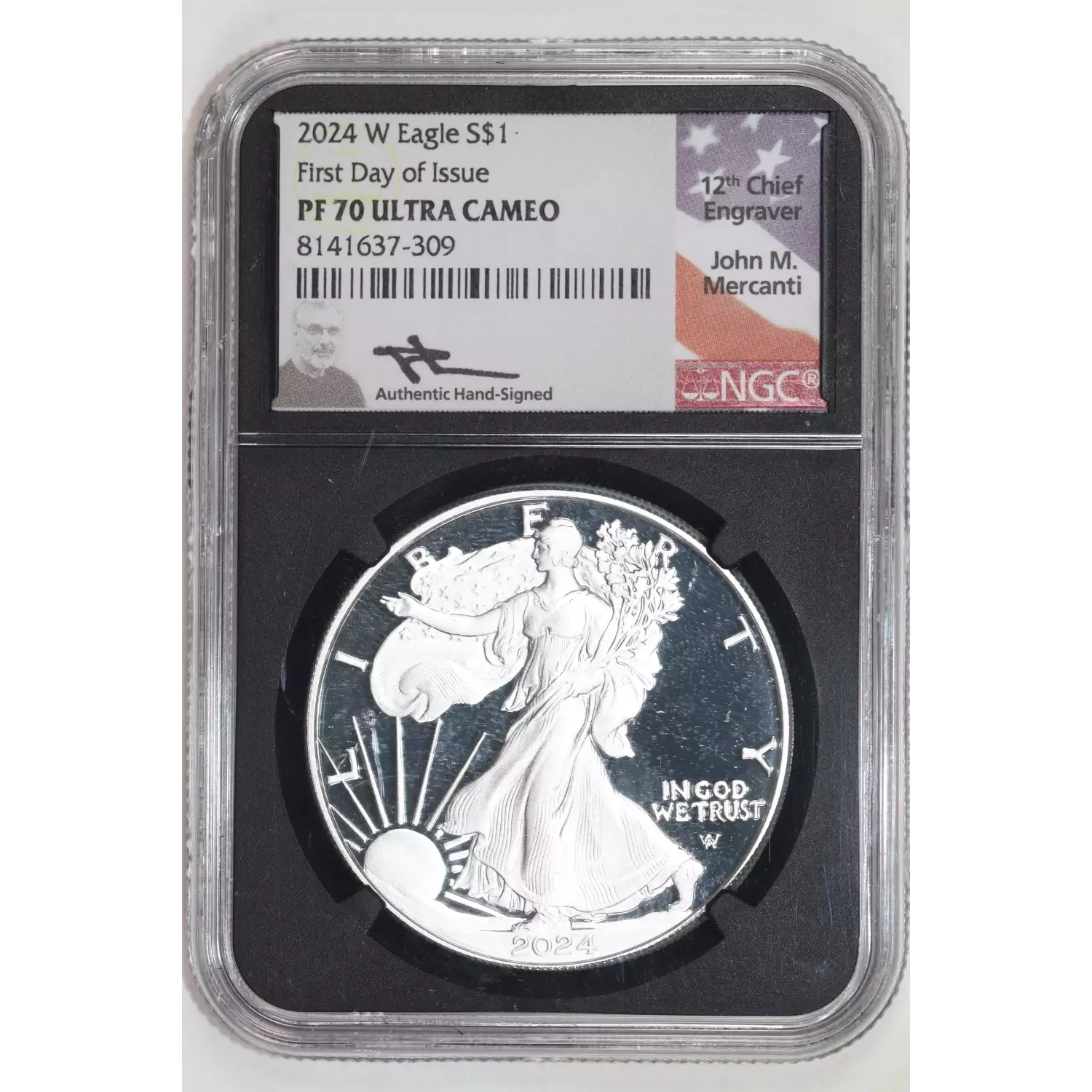 2024-W PROOF SILVER EAGLE NGC PR70 UCAM FDOI MERCANTI SIGNATURE