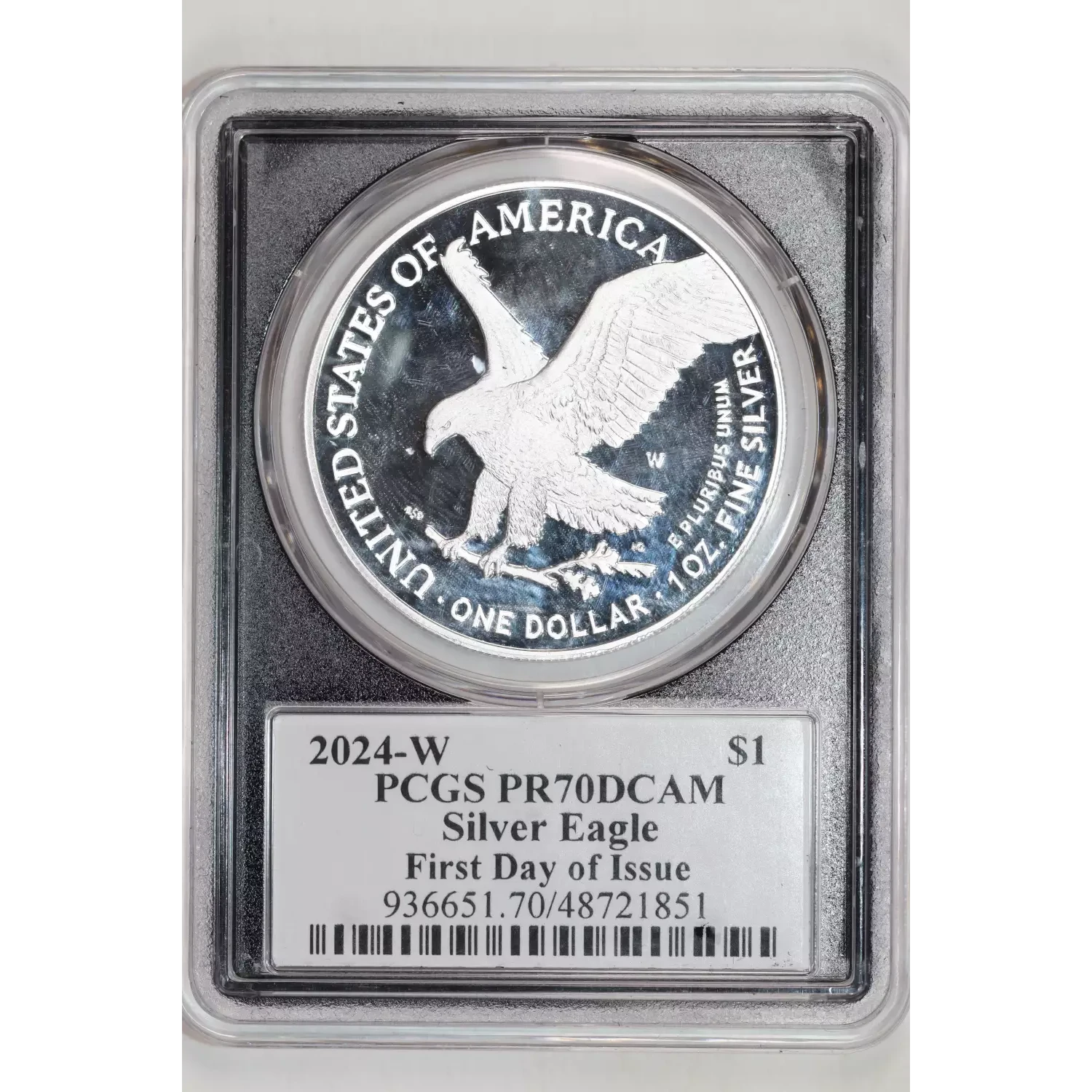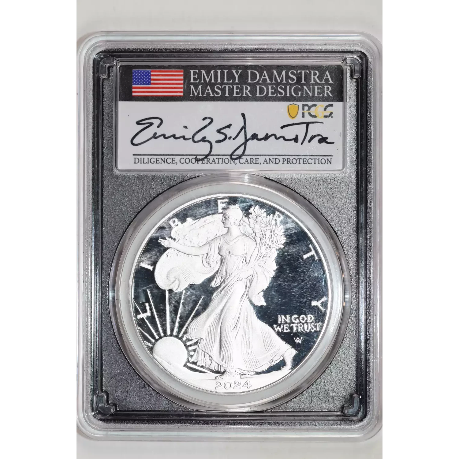 2024-W PROOF SILVER EAGLE PCGS PR70 DCAM FDOI DAMSTRA SIGNATURE