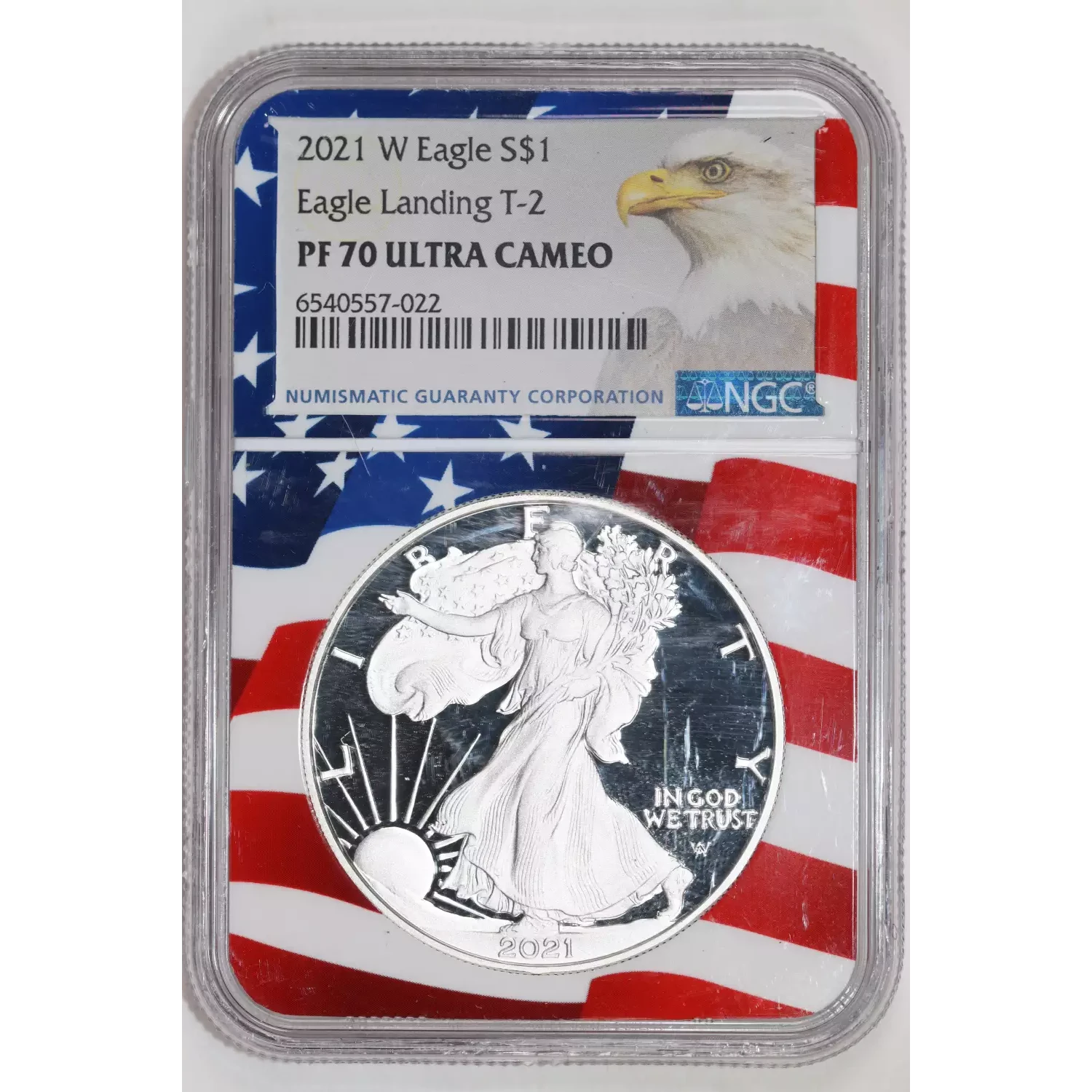 2021-W PROOF SILVER EAGLE LANDING TYPE 2 NGC PR70 UCAM FLAG LABEL