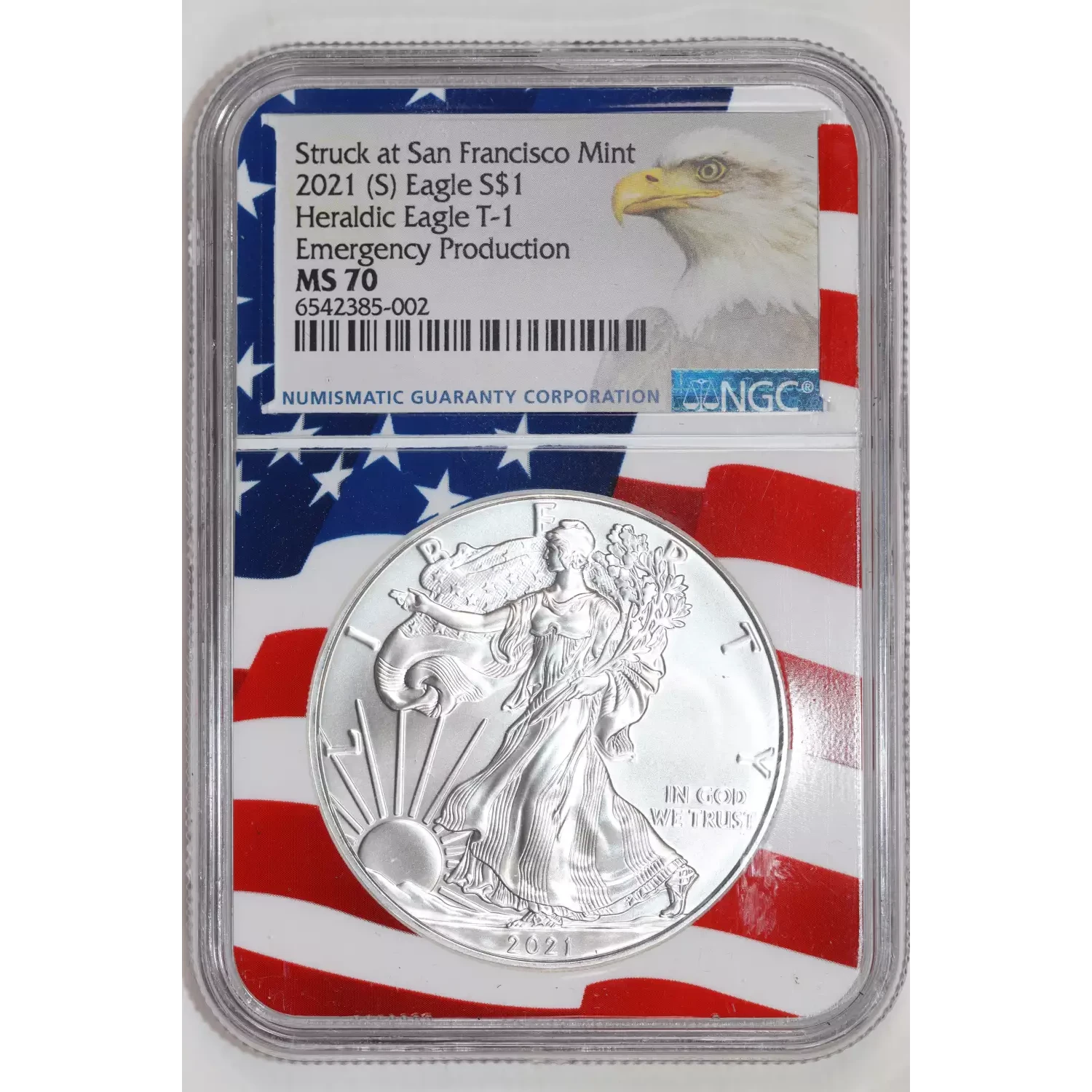 2021 (S) SILVER HERALDIC EAGLE TYPE 1 NGC MS70 EMERGENCY STRUCK AT SAN FRANCISCO MINT