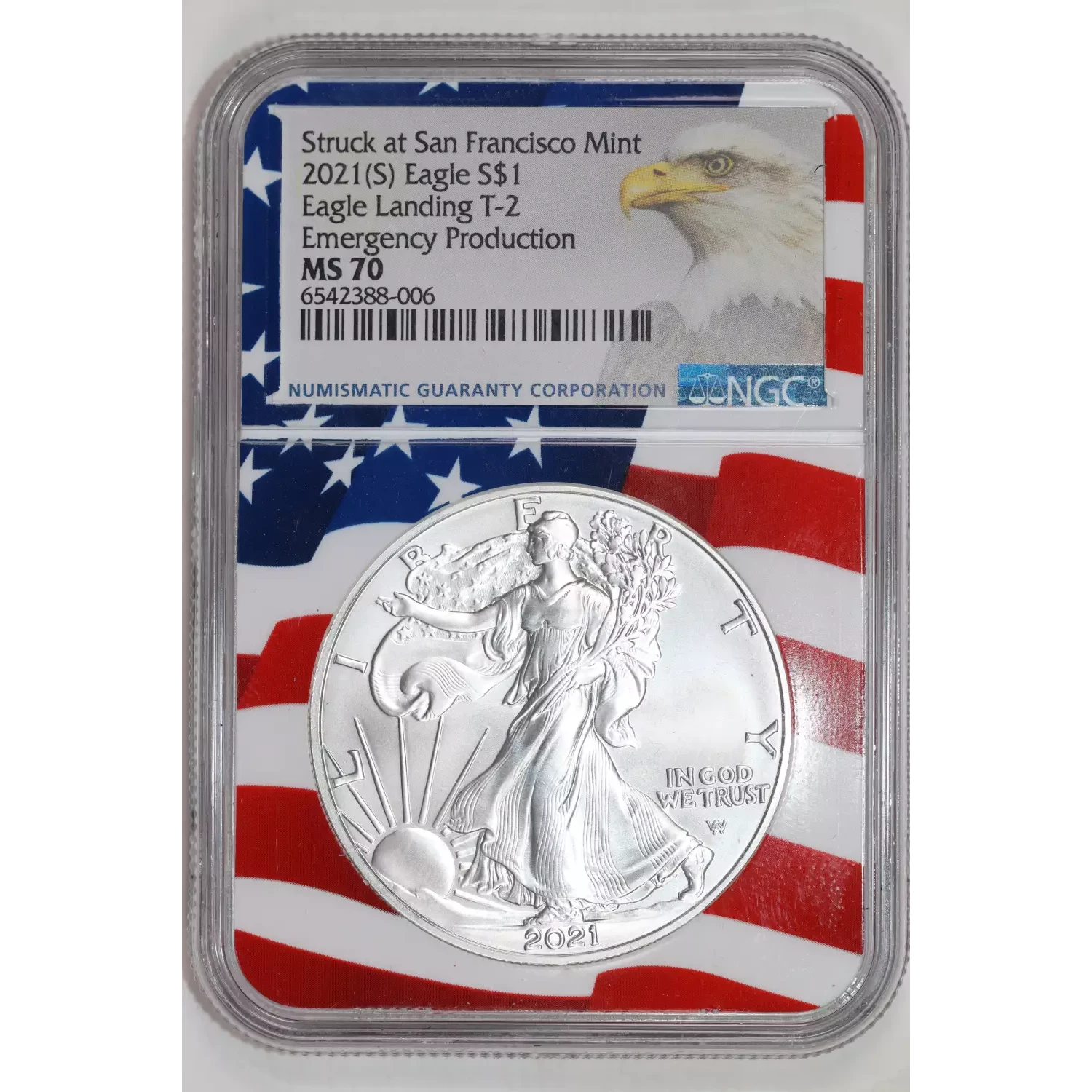 2021 (S) SILVER LANDING EAGLE TYPE 2 NGC MS70 EMERGENCY STRUCK AT SAN FRANCISCO MINT