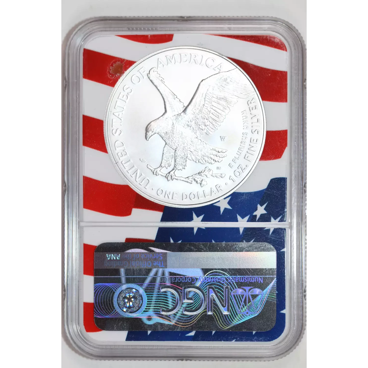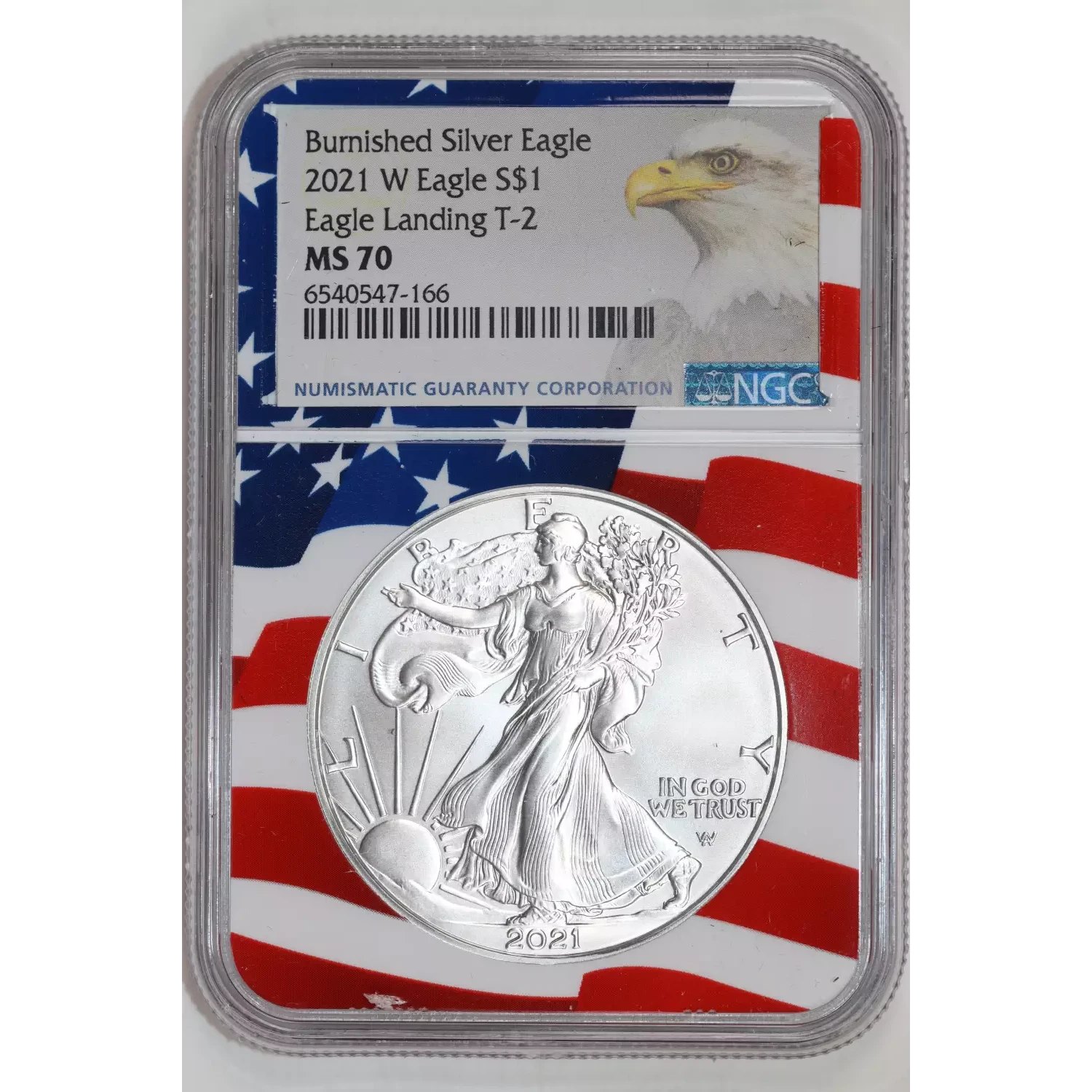2021-W BURNISHED TYPE 2 LANDING SILVER EAGLE NGC MS70 FLAG LABEL