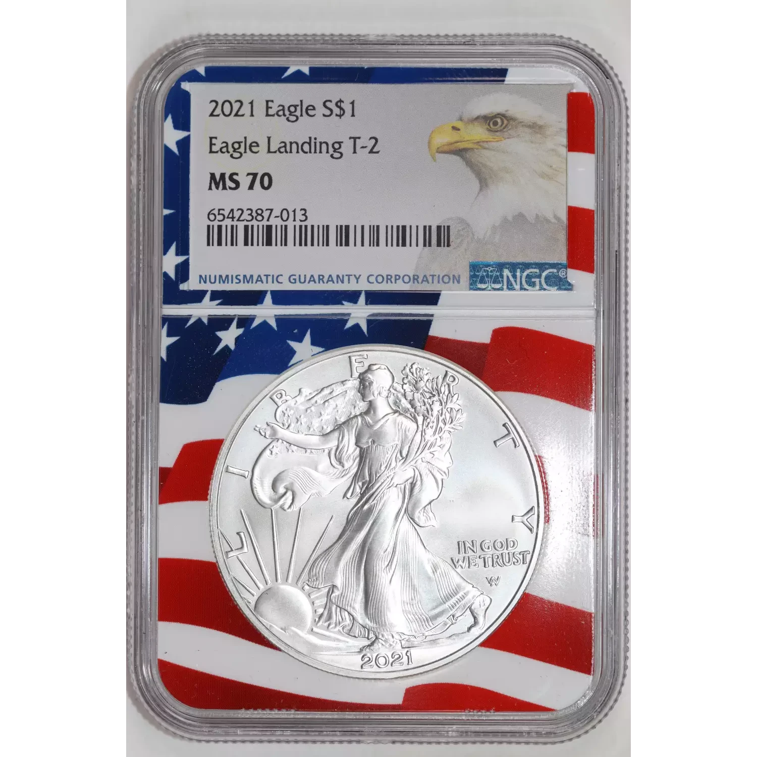 2021 SILVER EAGLE TYPE 2 LANDING NGC MS70 FLAG LABEL