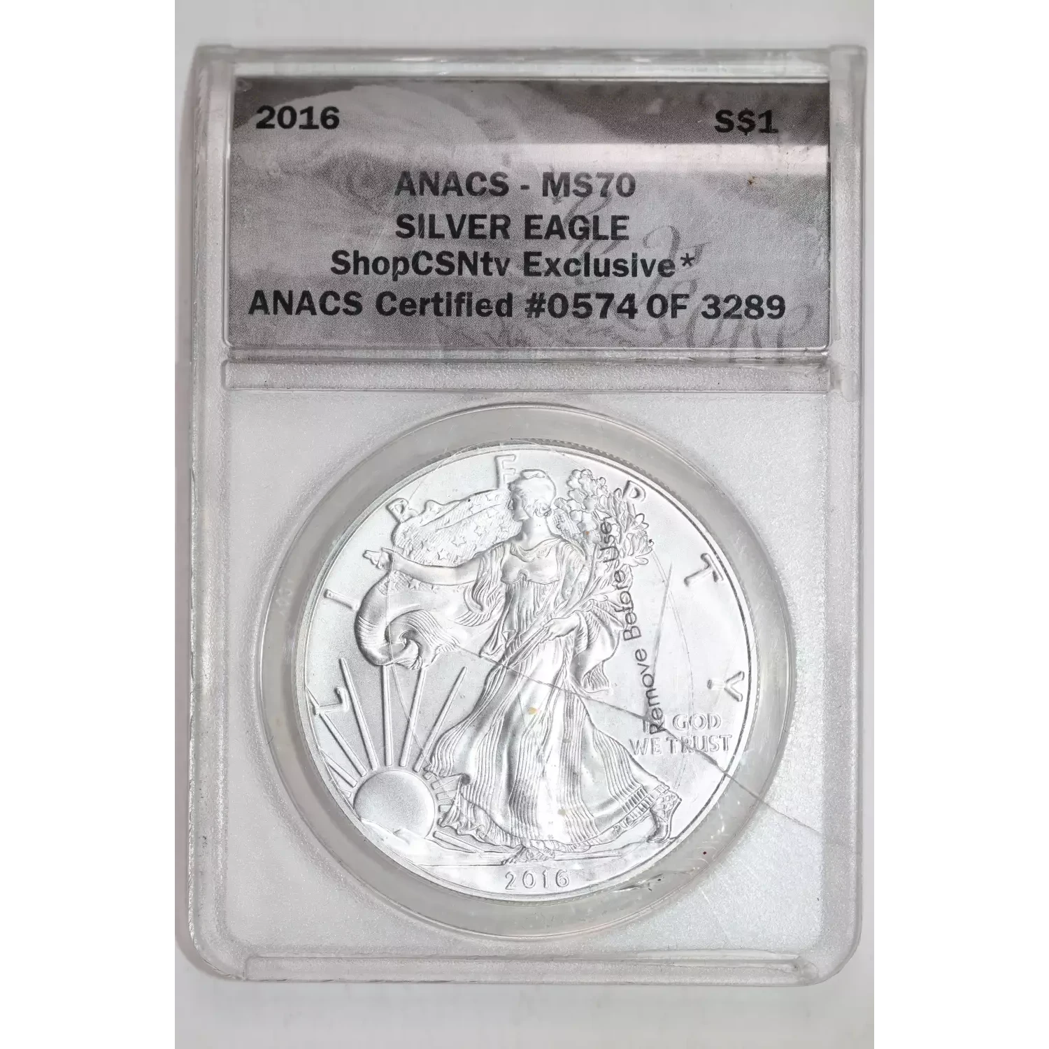 2016 SILVER AMERICAN EAGLE ANACS MS70 CSN TV *CRACKED HOLDER
