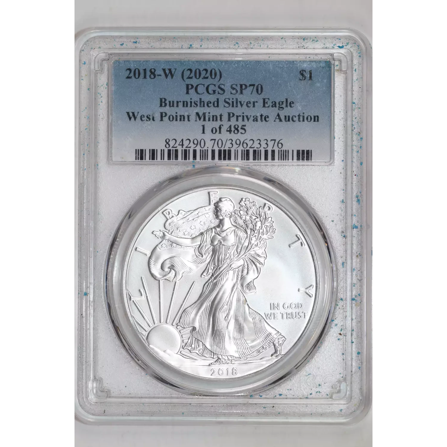 2018-W (2020) BURNISHED SILVER EAGLE WEST POINT PRIVATE AUCTION PCGS SP70