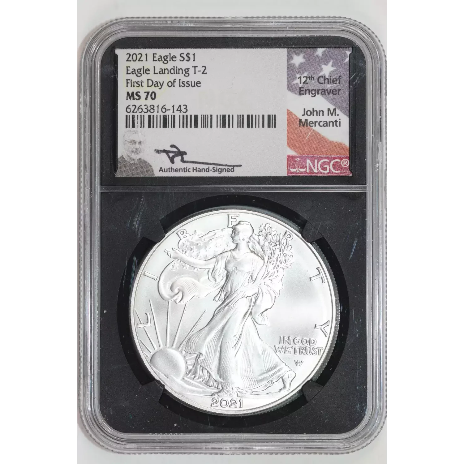 2021 SILVER EAGLE LANDING TYPE 2 NGC MS70 FDOI MERCANTI SIGNATURE
