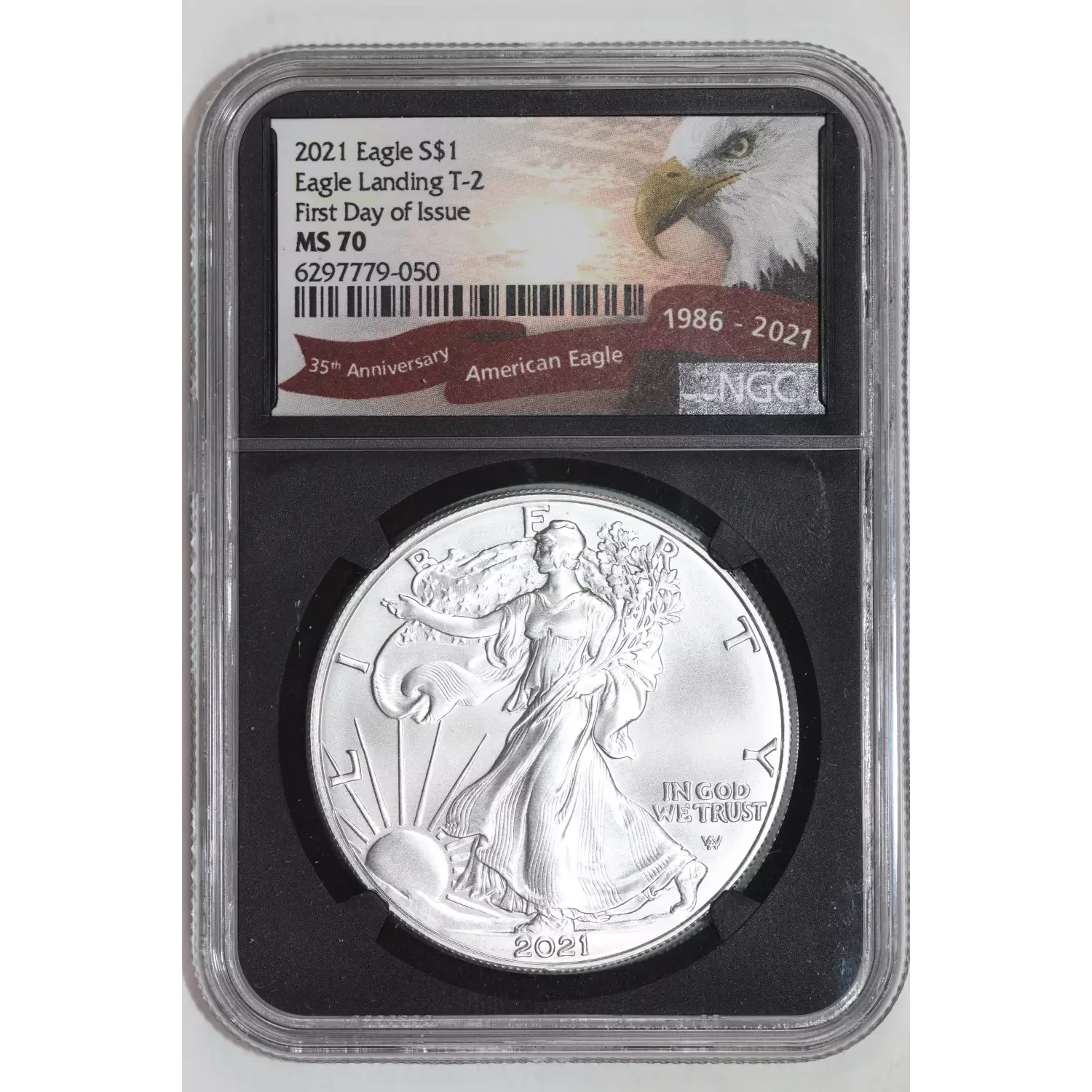 2021 SILVER EAGLE LANDING TYPE 2 NGC MS70 FIRST DAY OF ISSUE