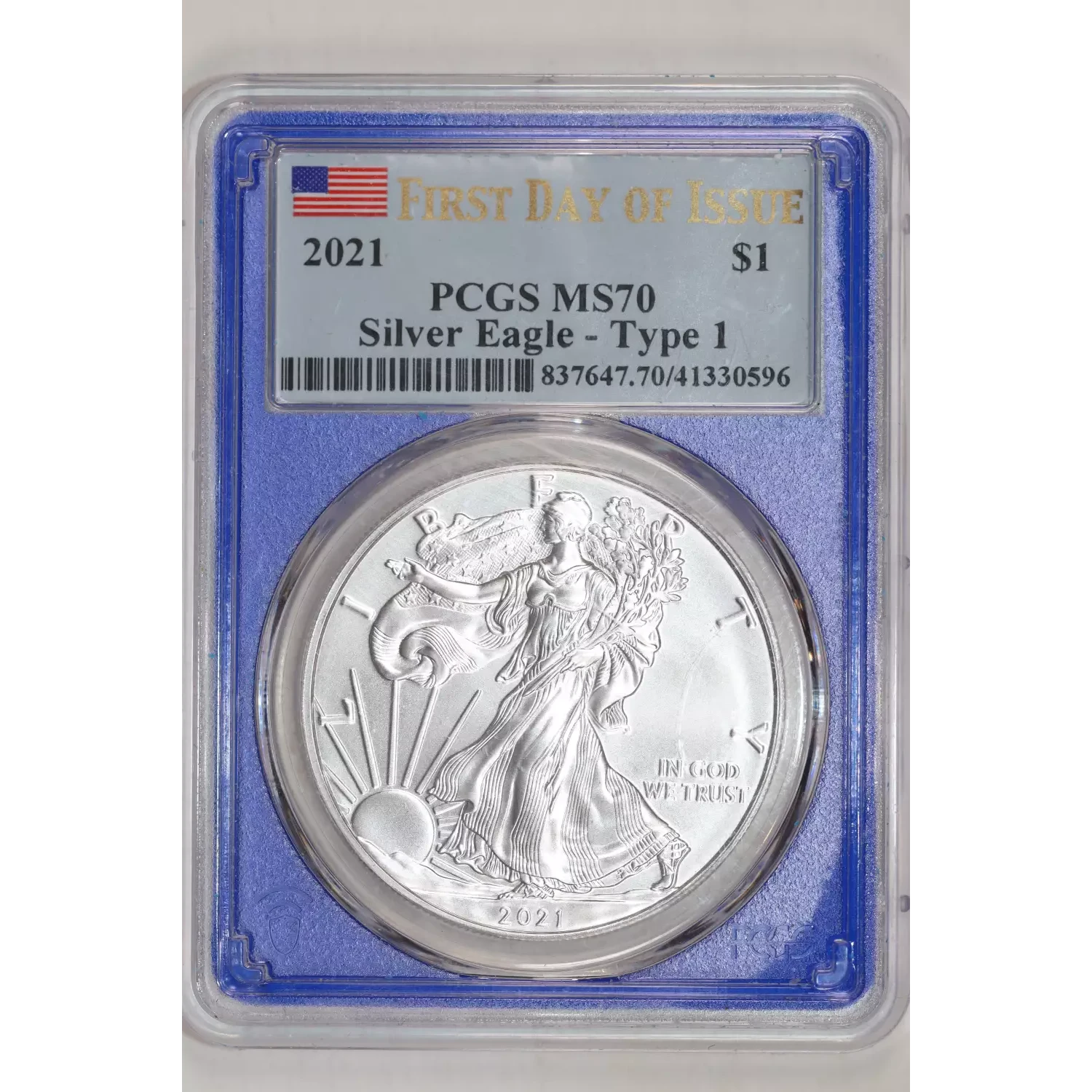 2021 SILVER EAGLE LANDING TYPE 2 PCGS MS70 FDOI BLUE CORE