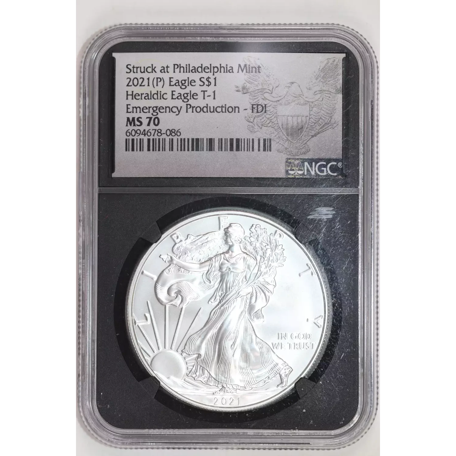 2021 (P) SILVER HERALDIC EAGLE TYPE 1 NGC MS70 EMERGENCY STRUCK AT PHILADELPHIA MINT