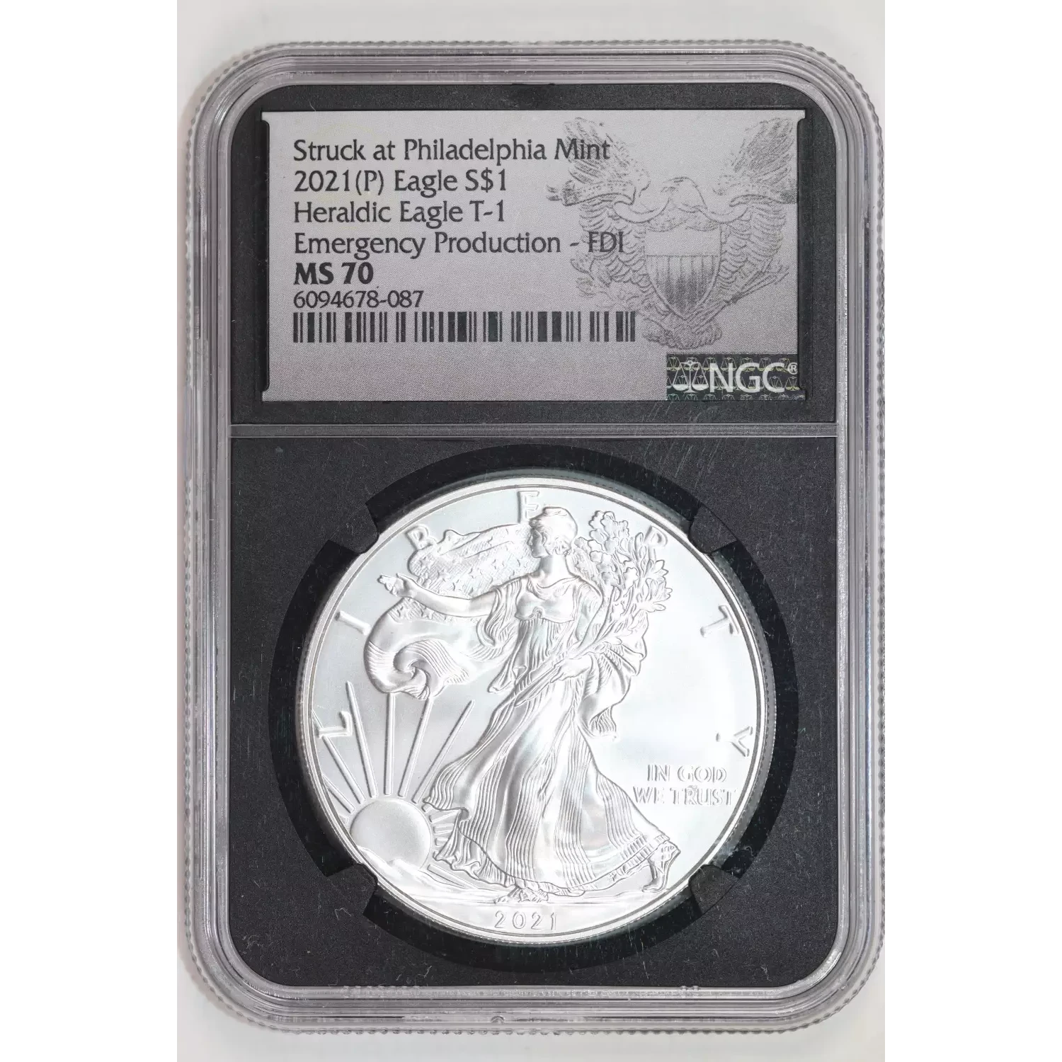 2021 (P) SILVER HERALDIC EAGLE TYPE 1 NGC MS70 EMERGENCY STRUCK AT PHILADELPHIA MINT