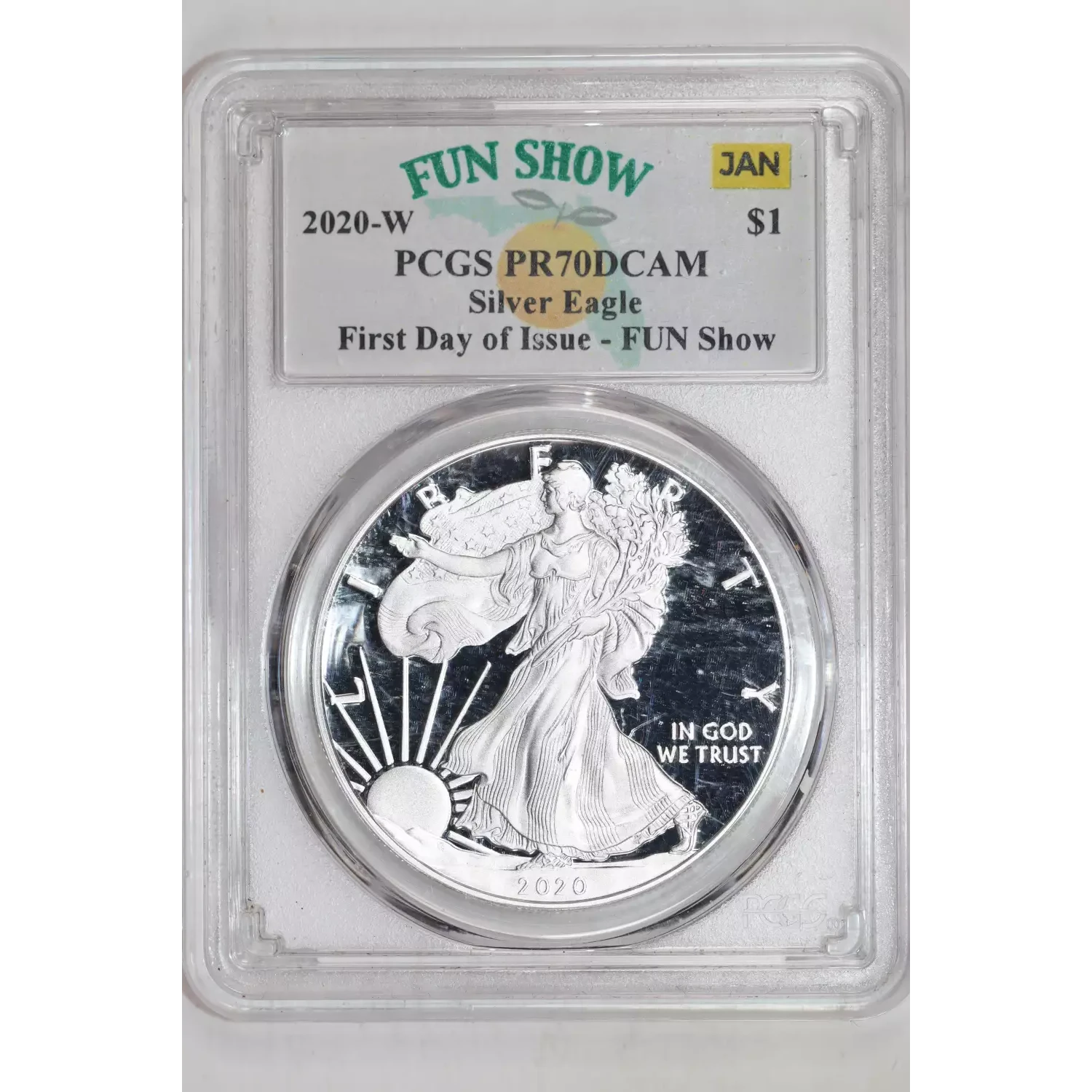 2020-W PROOF SILVER EAGLE PCGS PR70 DCAM FDOI FUN SHOW!