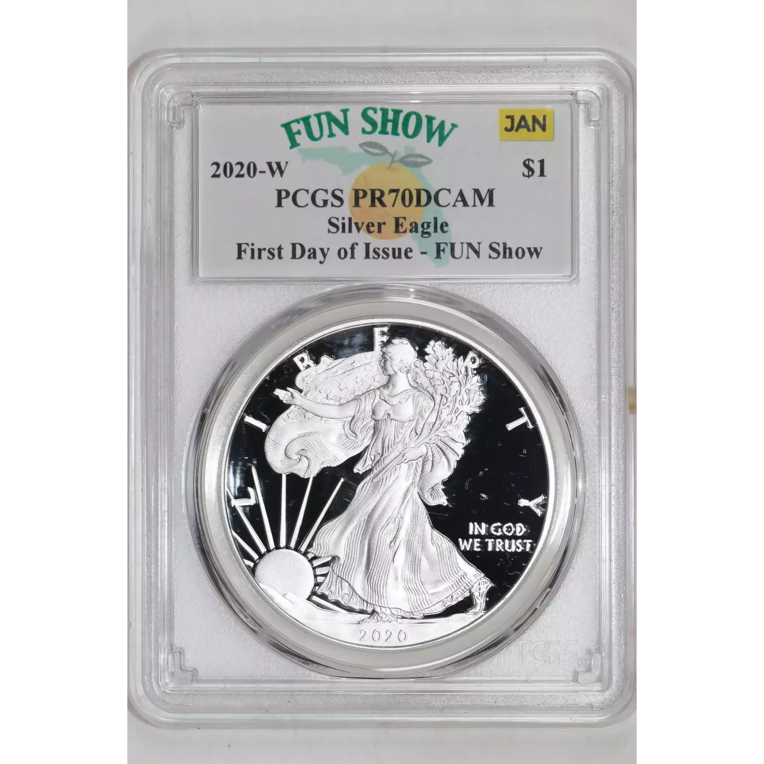 2020-W PROOF SILVER EAGLE PCGS PR70 DCAM FDOI FUN SHOW!