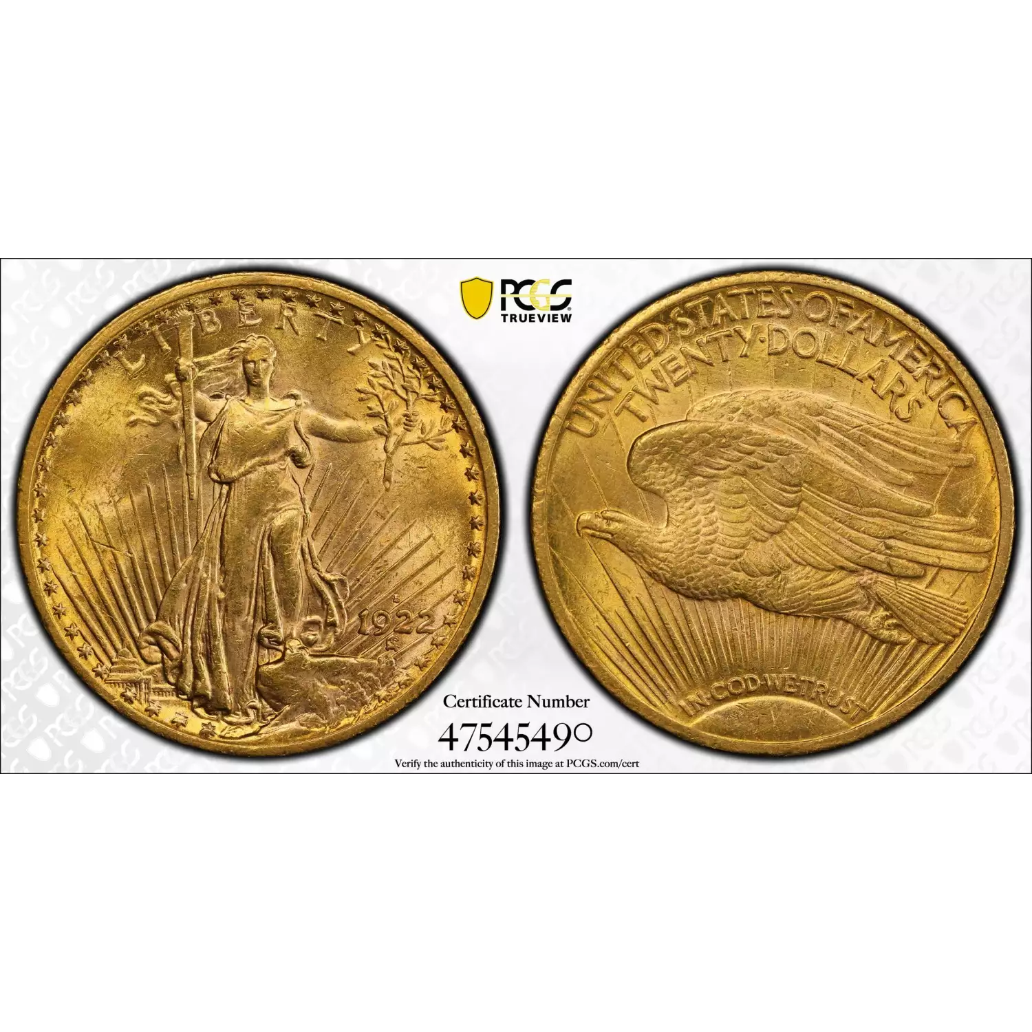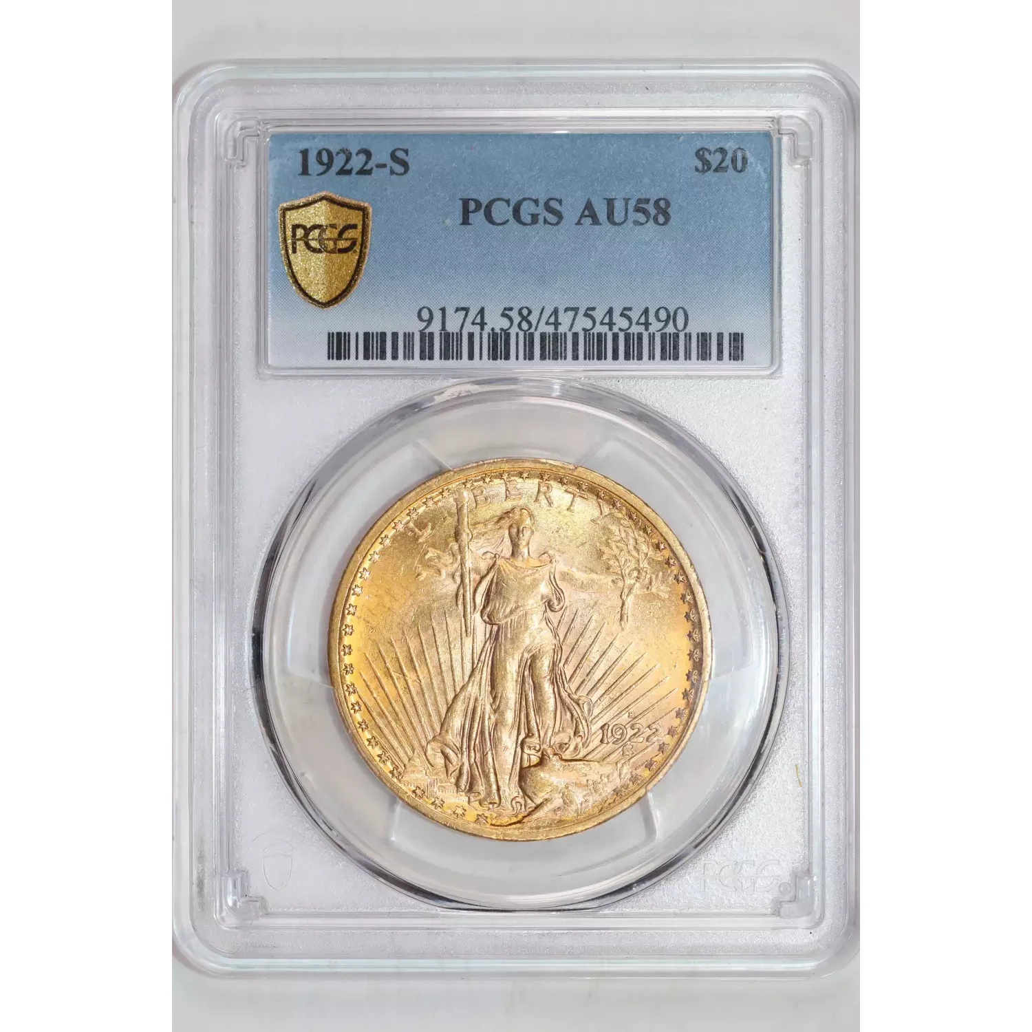1922-S $20 GOLD SAINT GAUDENS DOUBLE EAGLE PCGS AU58 - FLASHY PQ!