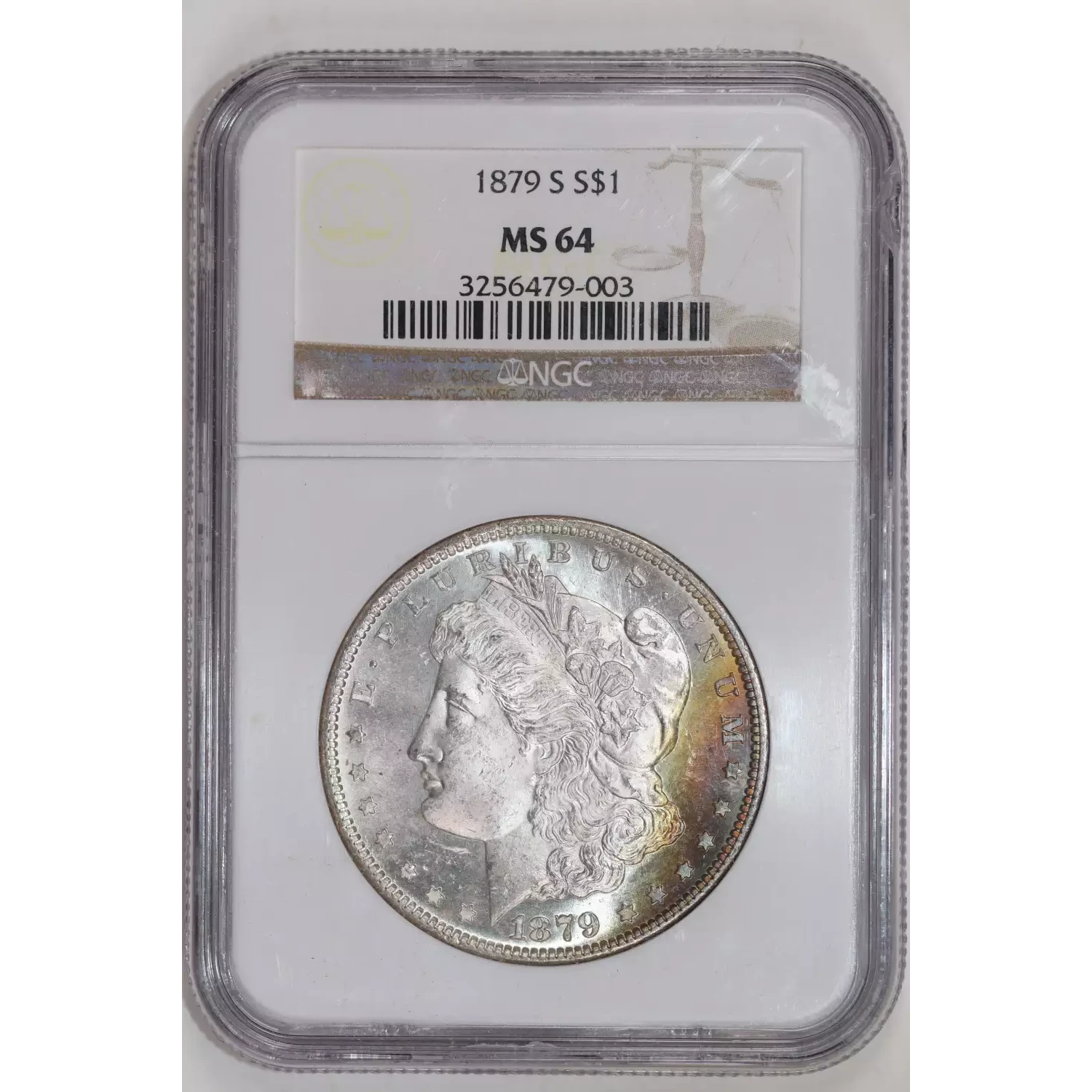 1879-S MORGAN DOLLAR NGC MS64 PRETTY COLOR, LOOKS PL!