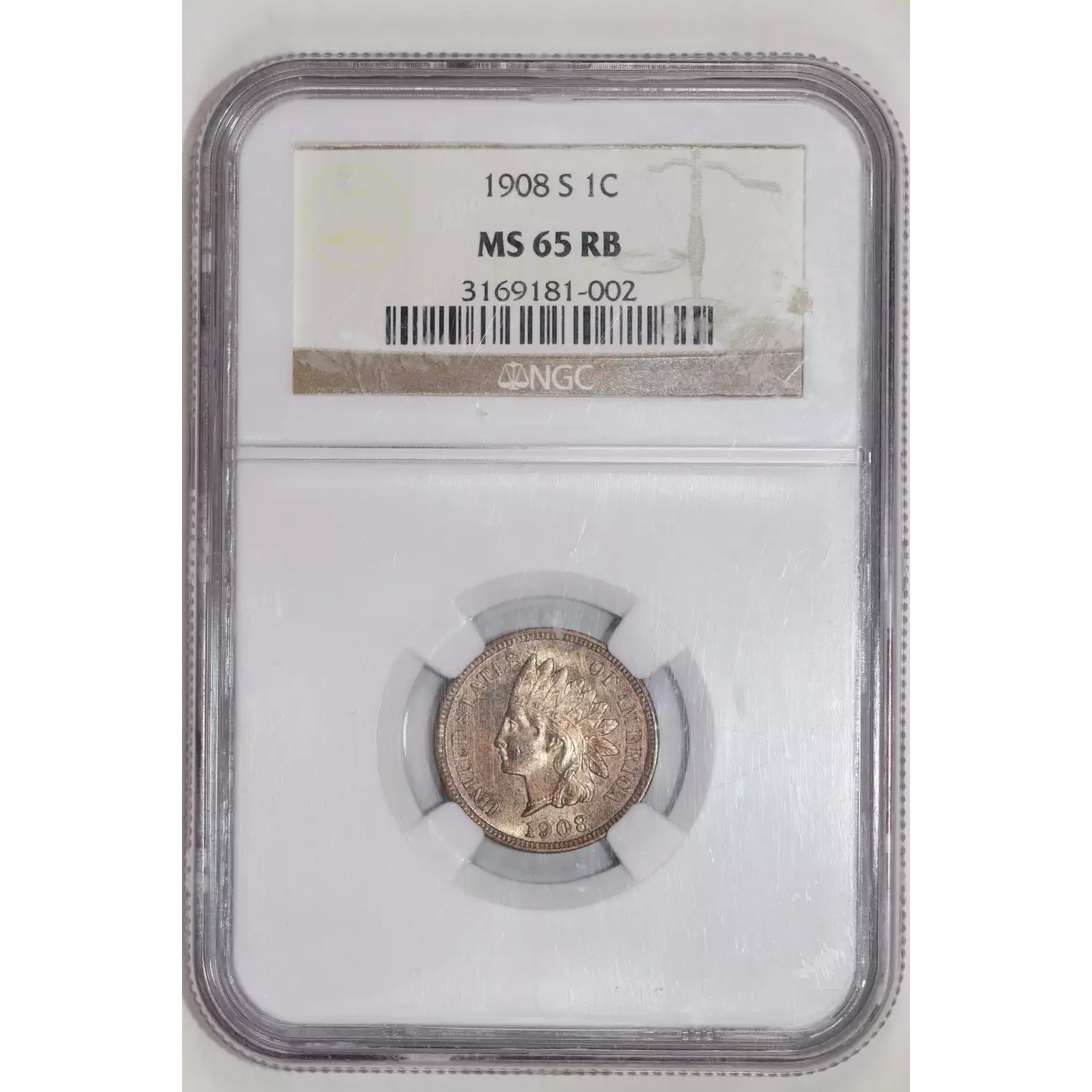 1908-S INDIAN HEAD CENT NGC MS65 RB