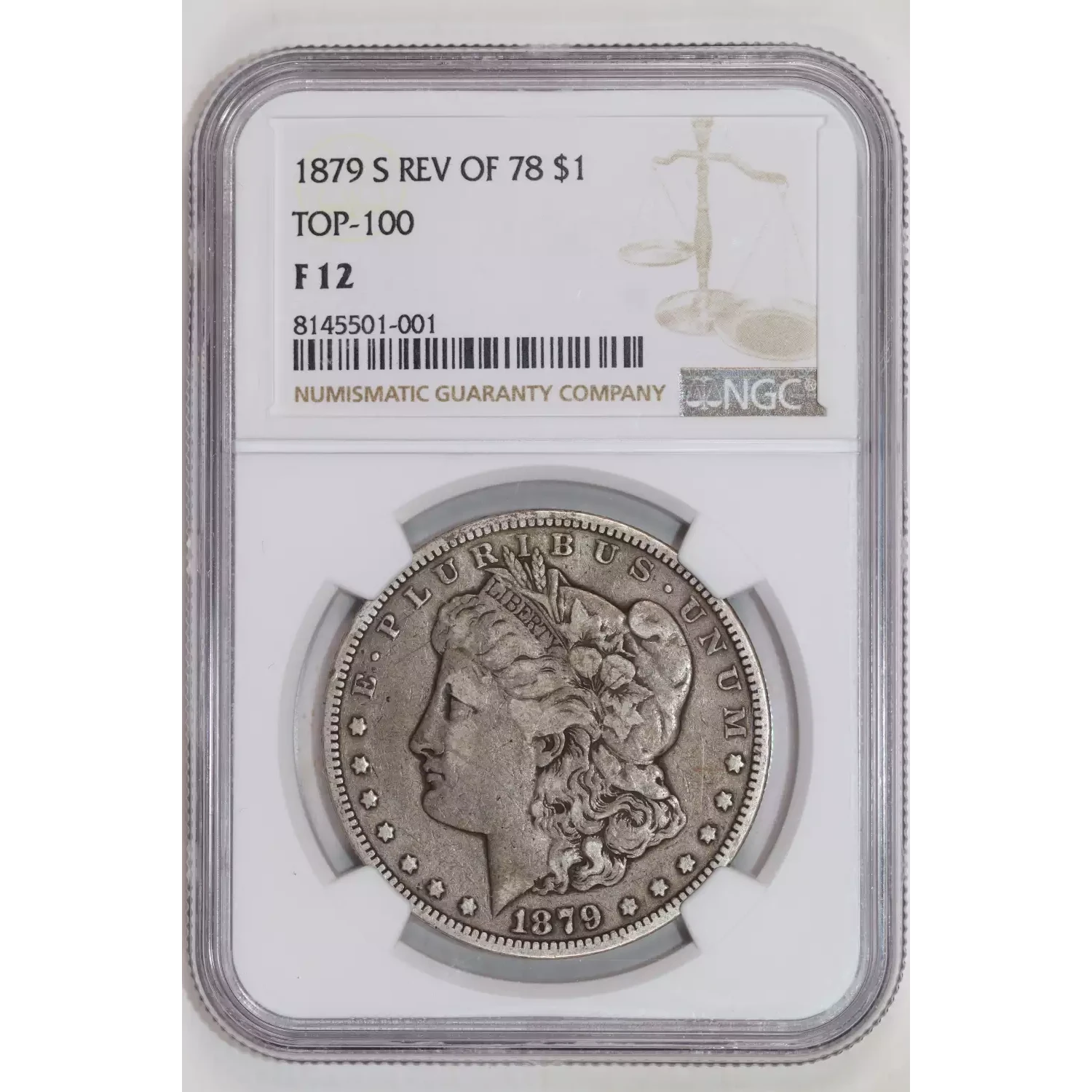 1879-S REVERSE 1878 TOP 100 MORGAN DOLLAR NGC F12