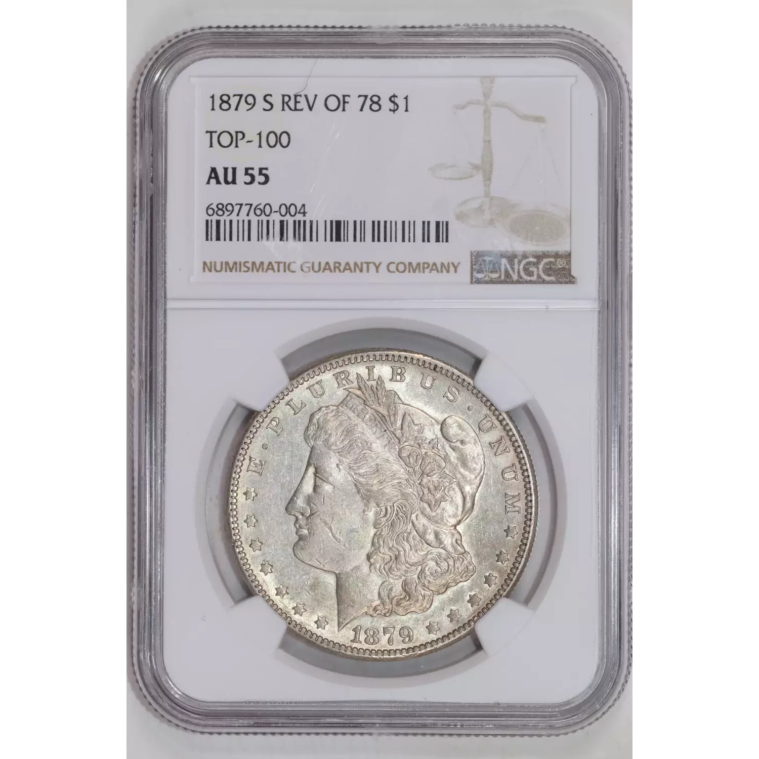 1879-S REVERSE 1878 TOP 100 MORGAN DOLLAR NGC AU55