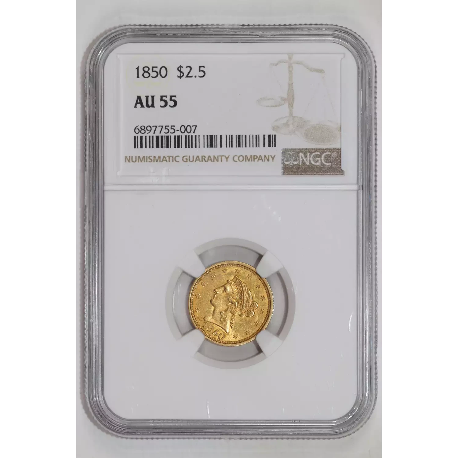 1850 $2.5 GOLD LIBERTY QUARTER EAGLE NGC AU55