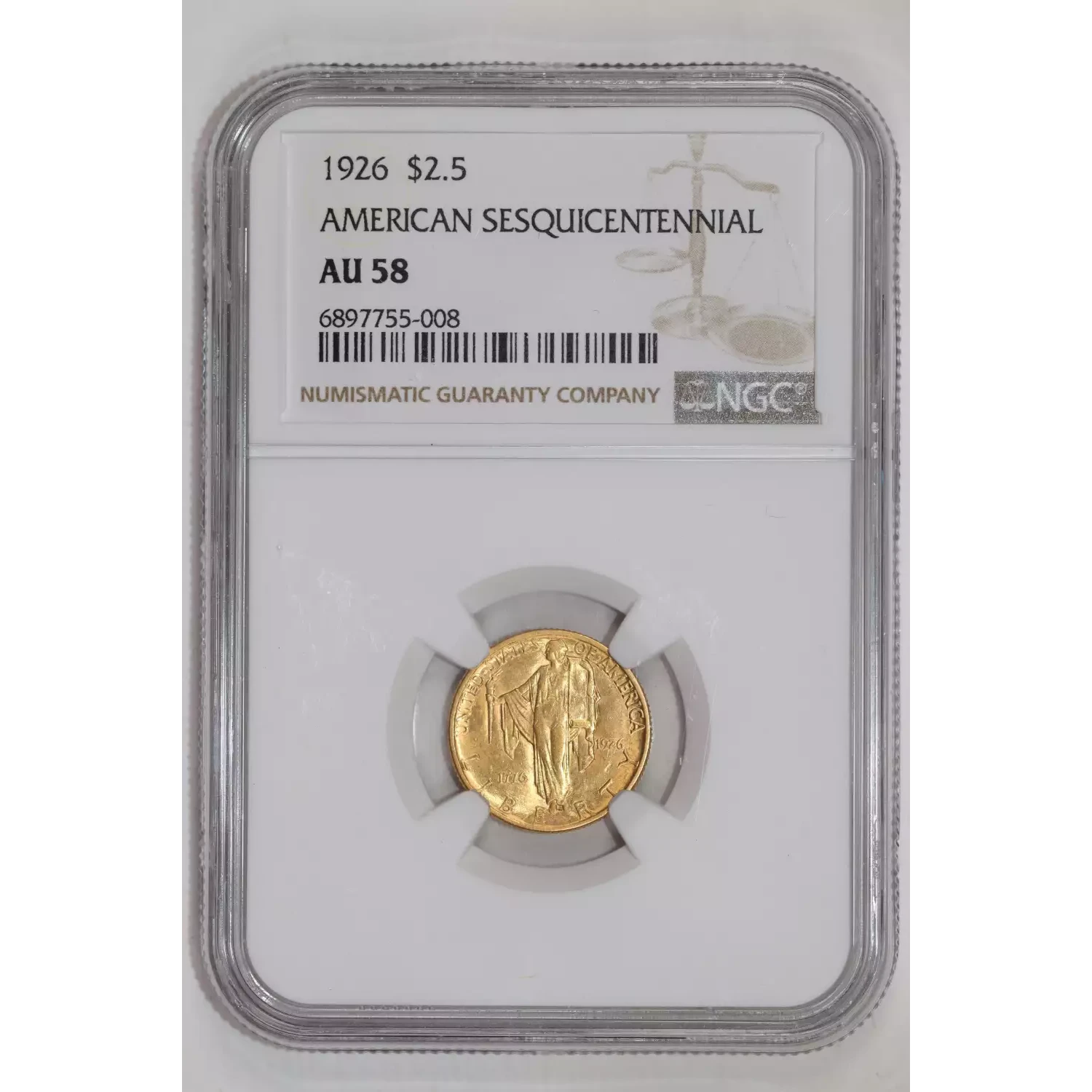 1926 $2.5 GOLD SESQUICENTENNIAL COMMEMORATIVE NGC AU58