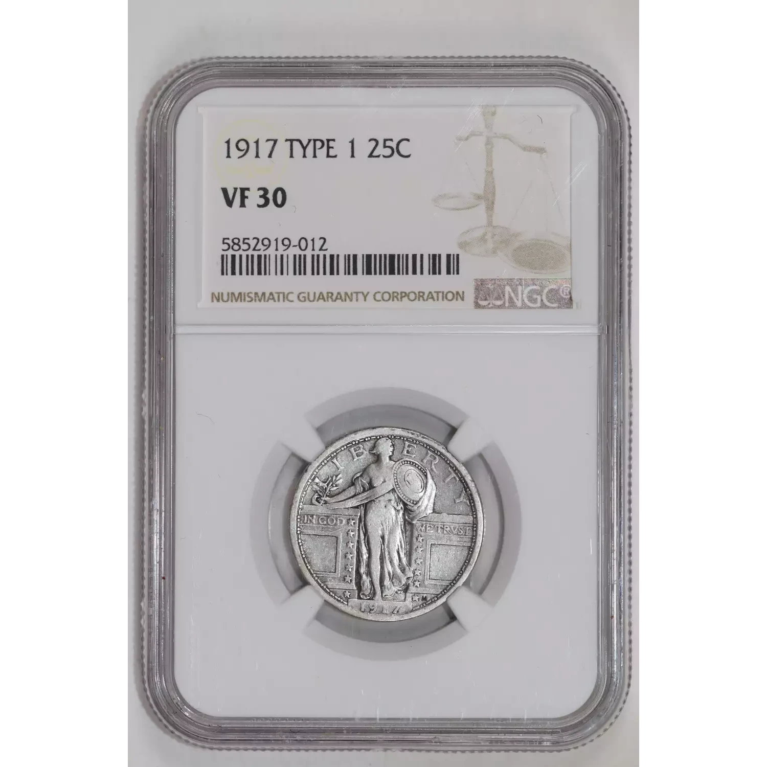1917 TYPE 1 STANDING LIBERTY QUARTER NGC VF30