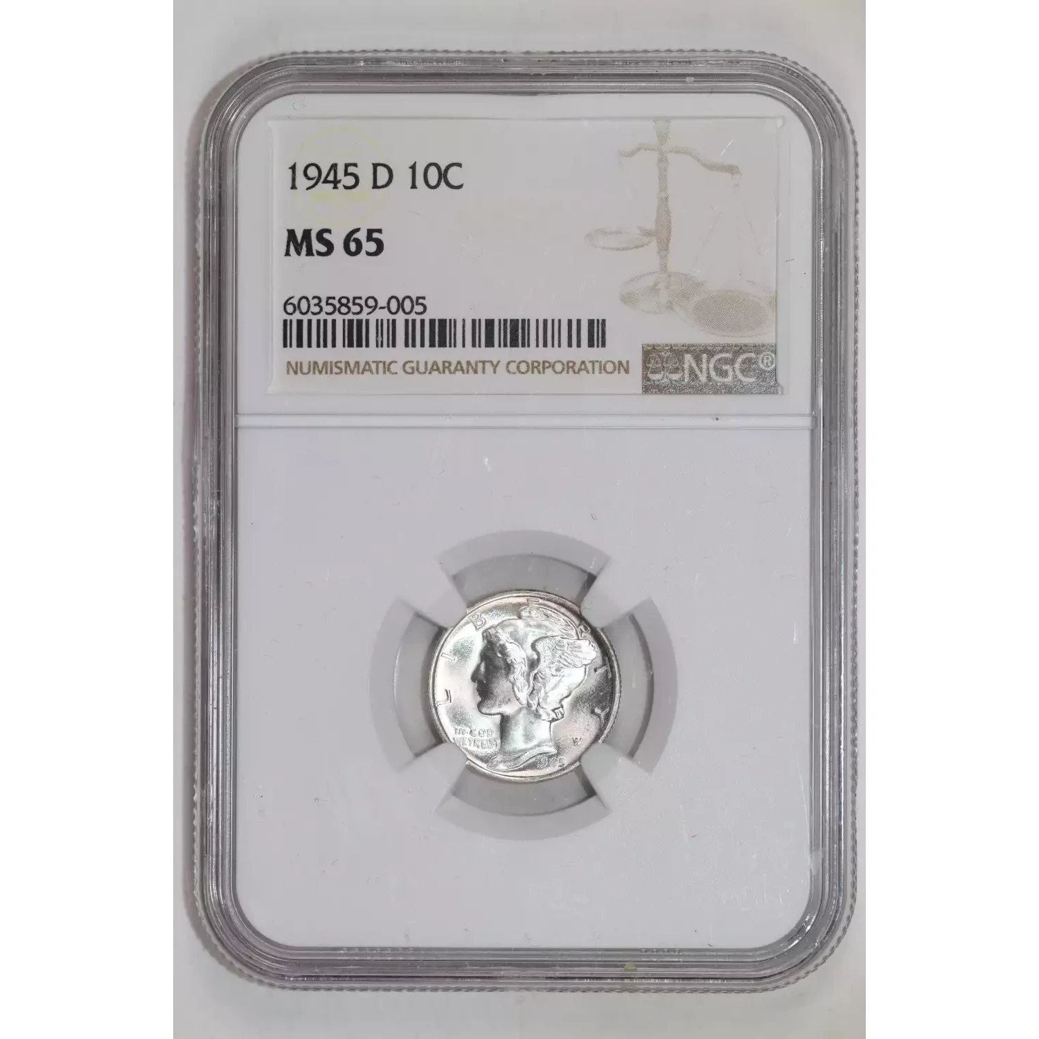 1945-D Dimes Winged Liberty Head or Mercury NGC MS-65
