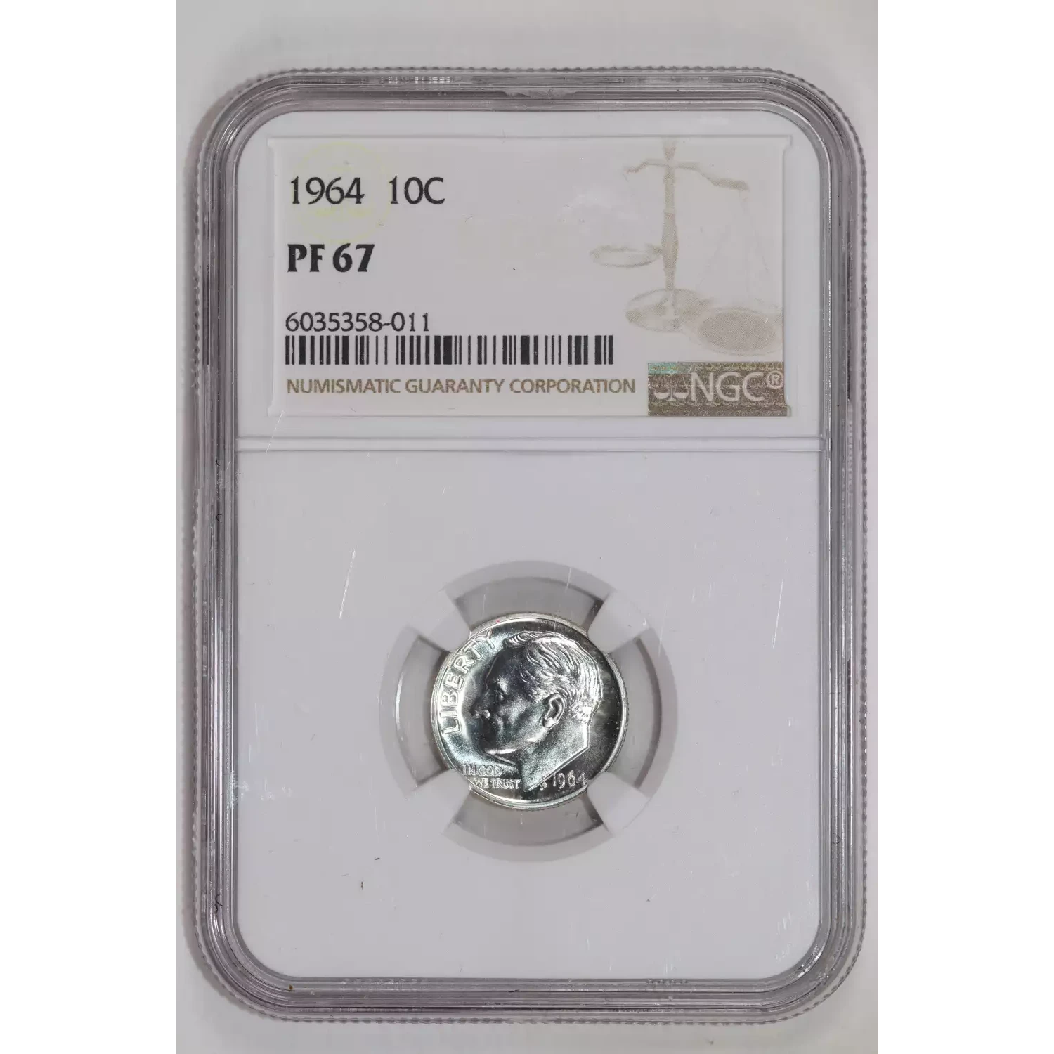 1964 PROOF ROOSEVELT DIME NGC PR67