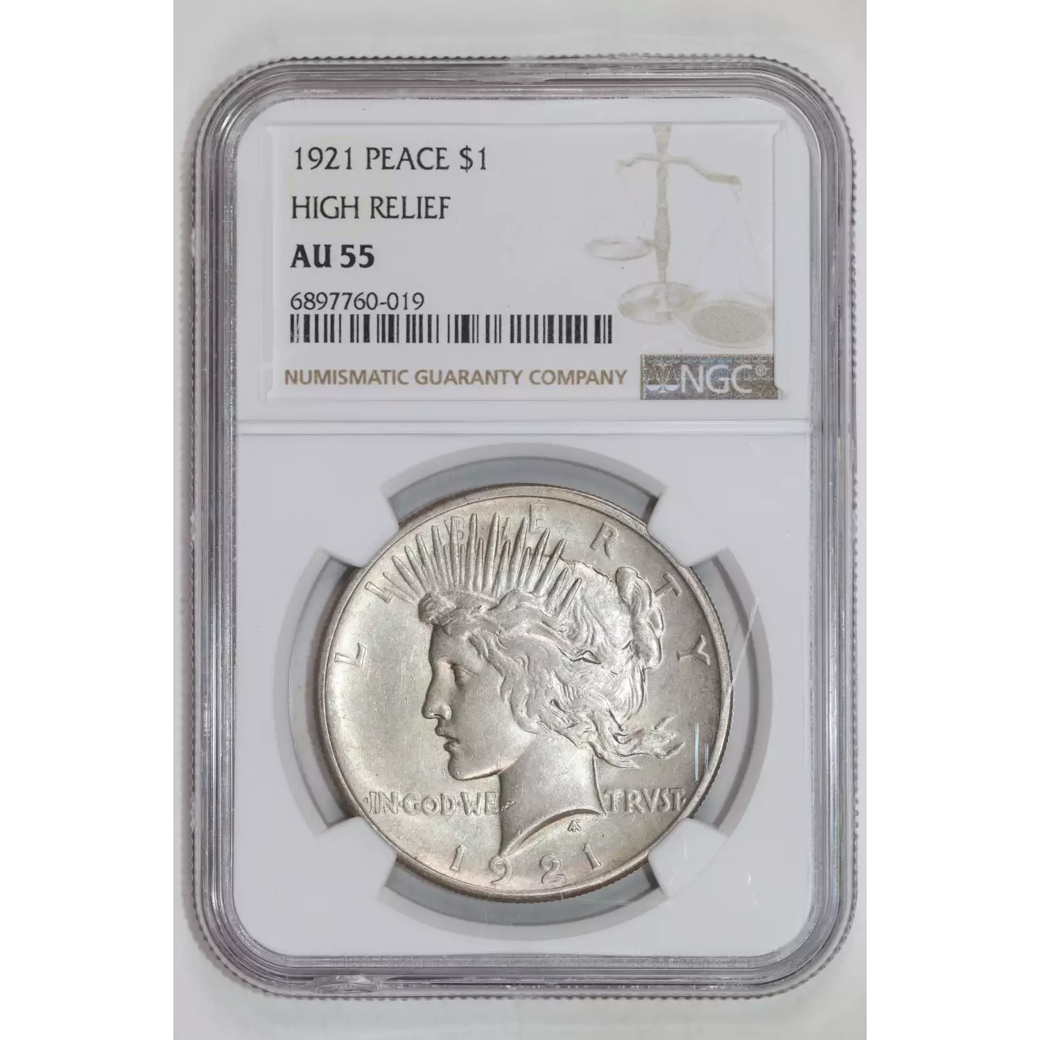 1921 Peace Silver Dollar NGC AU-55 HIGH RELIEF