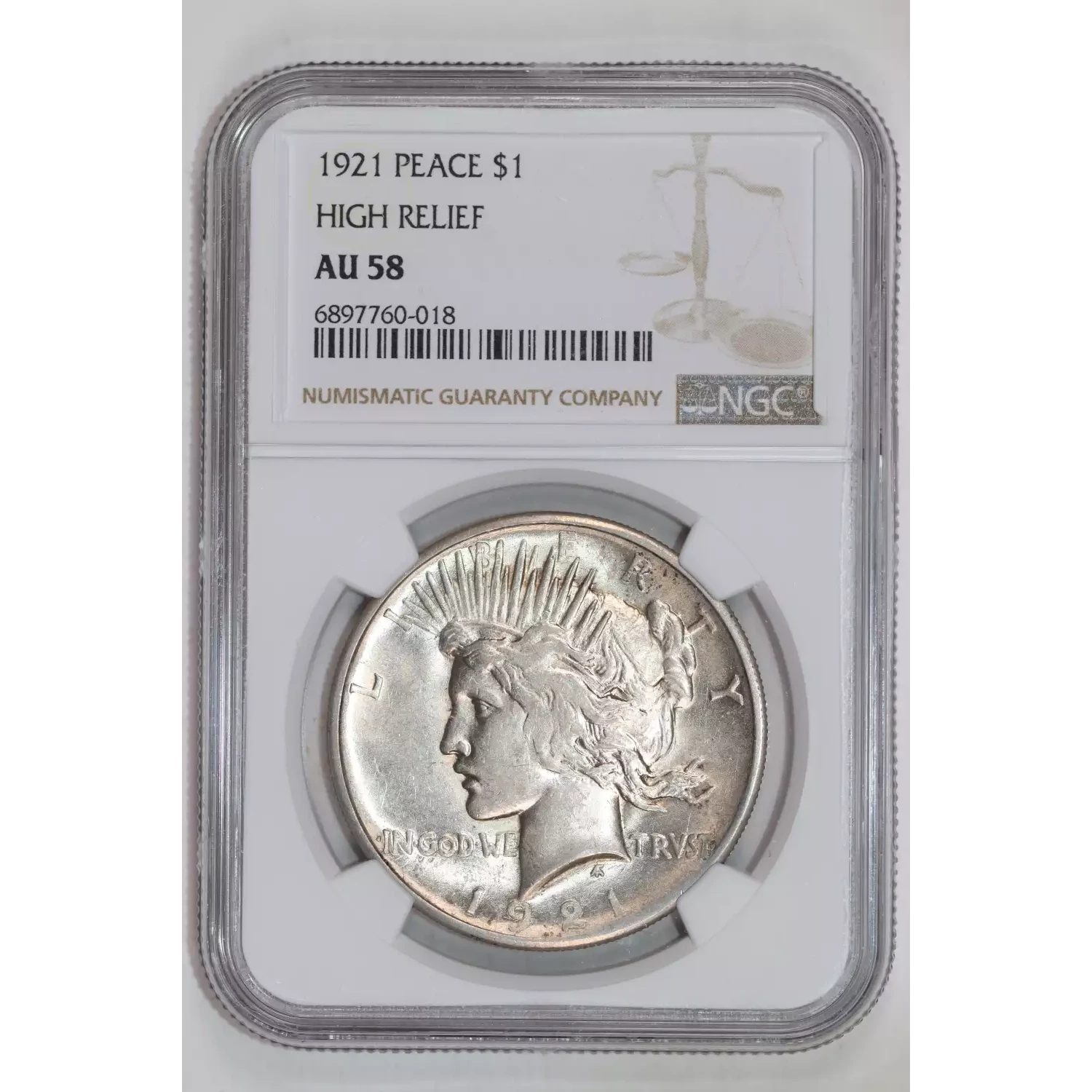 1921 Peace Silver Dollar NGC AU-58 HIGH RELIEF