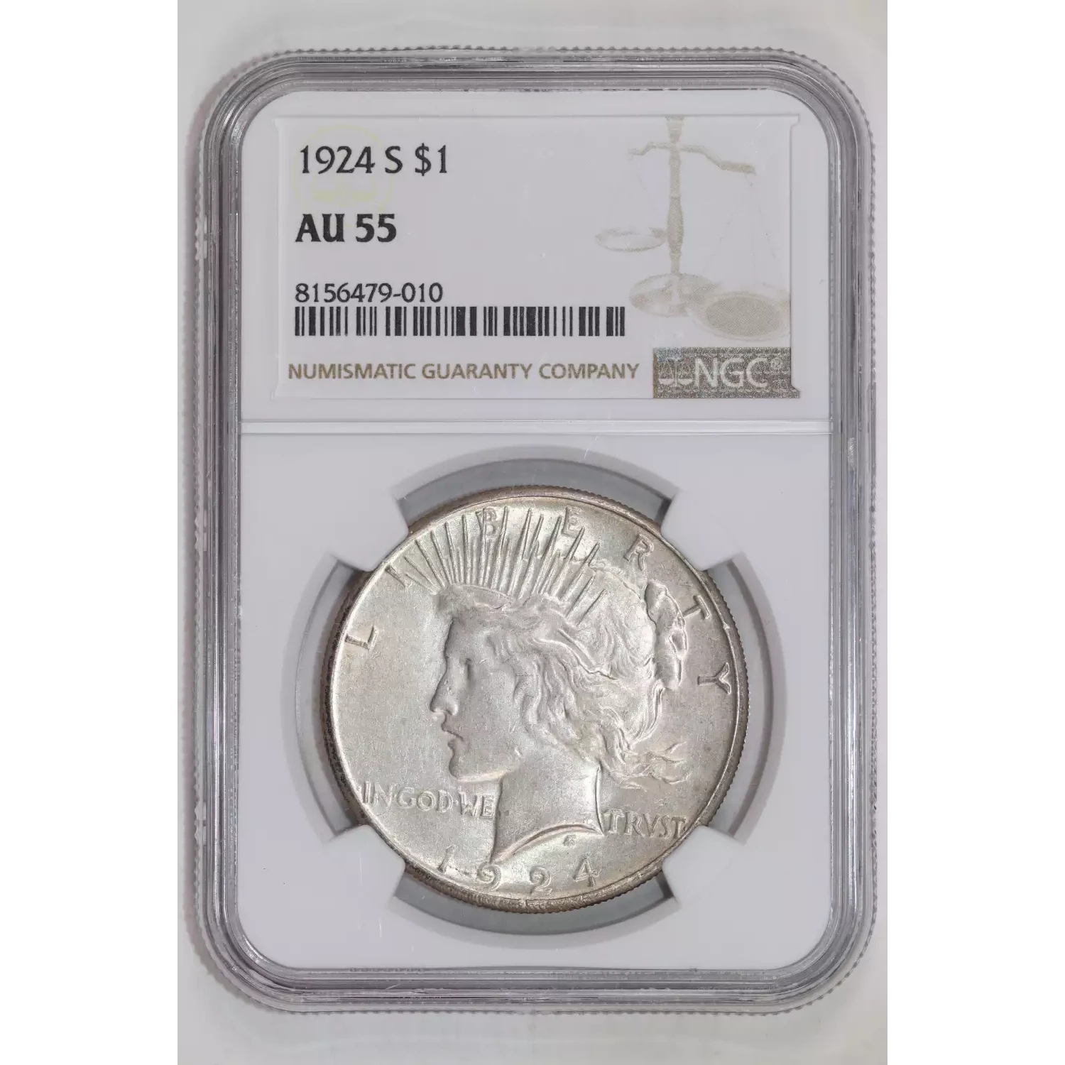 1924-S PEACE DOLLAR NGC AU55