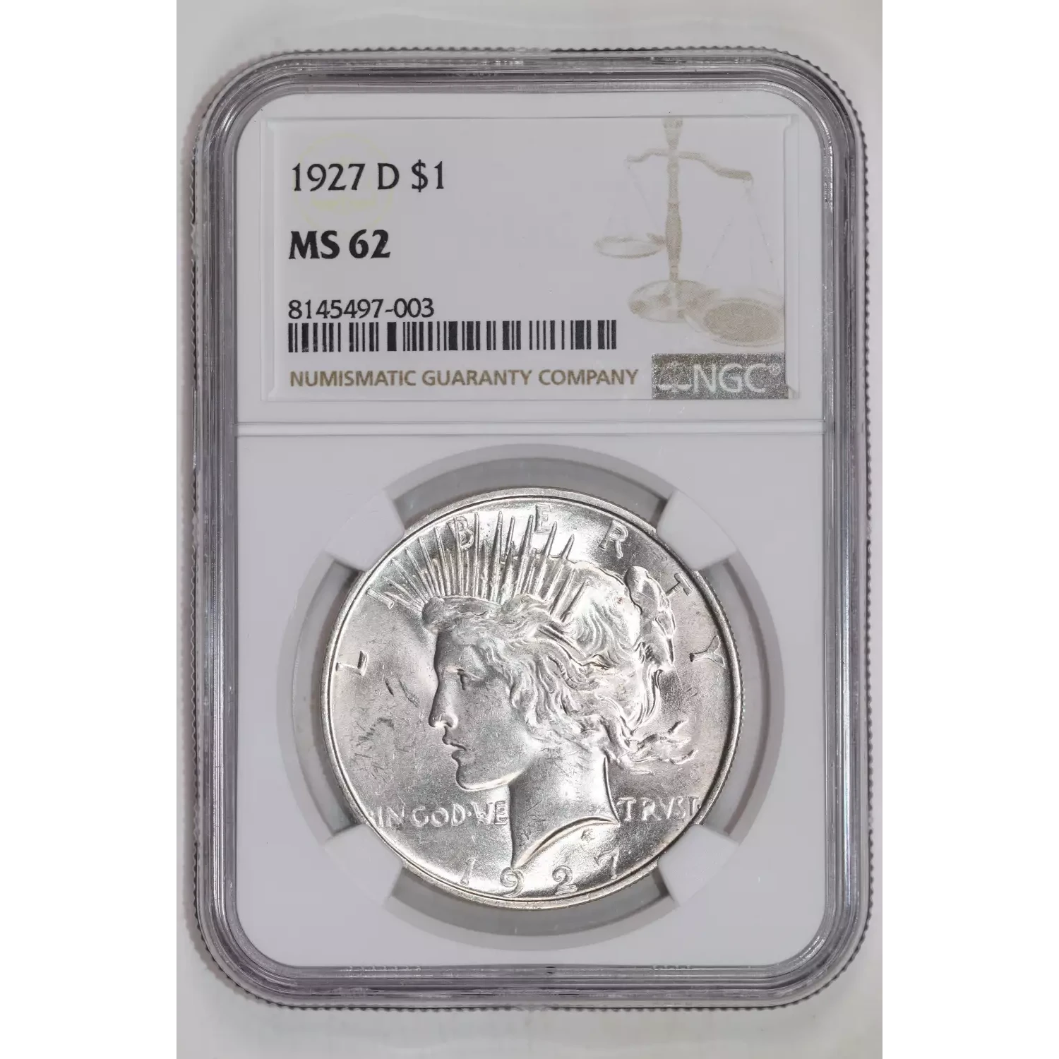 1927-D Peace Silver Dollar NGC MS-62