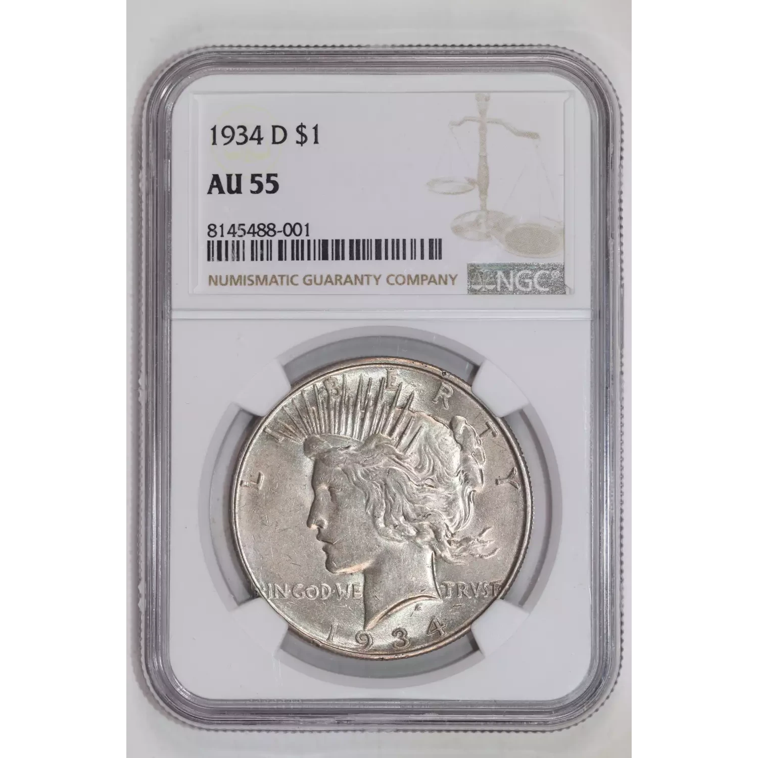 1934-D PEACE DOLLAR NGC AU55