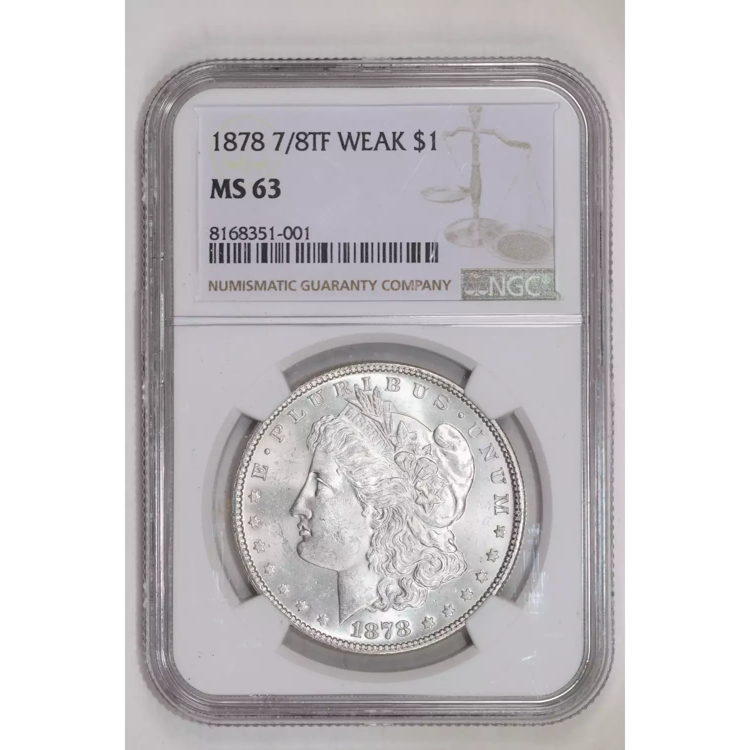 1878 7/8TF WEAK MORGAN DOLLAR NGC MS63