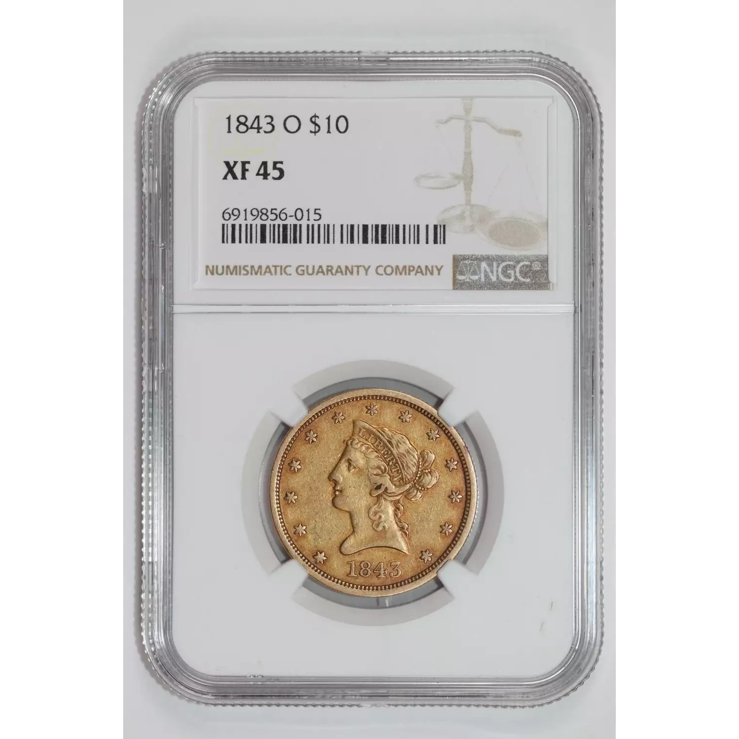 1843-O $10 GOLD LIBERTY EAGLE NGC XF45