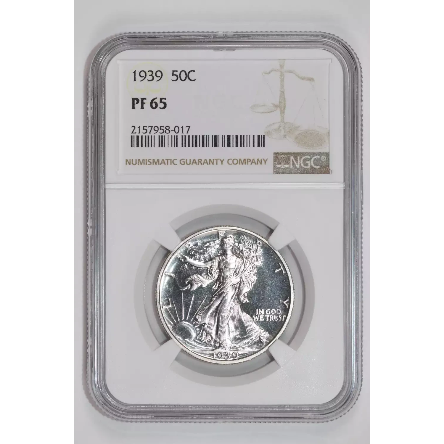 1939 PROOF WALKING LIBERTY HALF DOLLAR NGC PR65 - PQ, WHITE COIN!