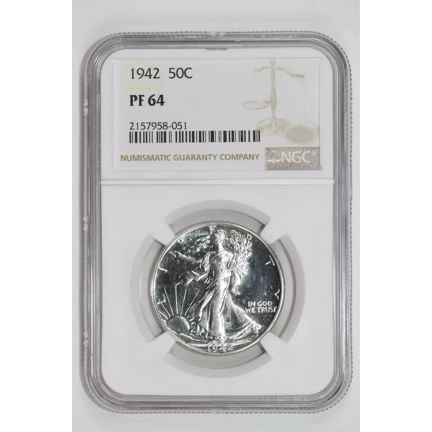 1942 PROOF WALKING LIBERTY HALF DOLLAR NGC PR64 - PQ, WHITE COIN!