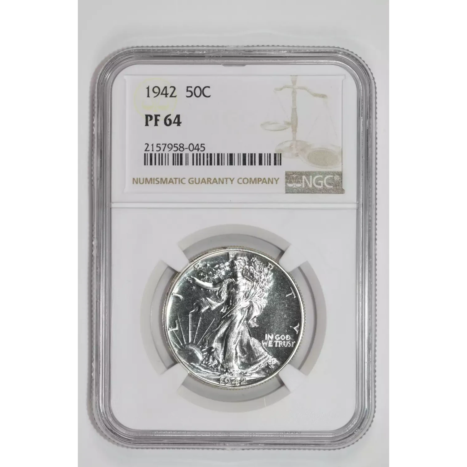1942 PROOF WALKING LIBERTY HALF DOLLAR NGC PR64 - PQ, WHITE COIN!