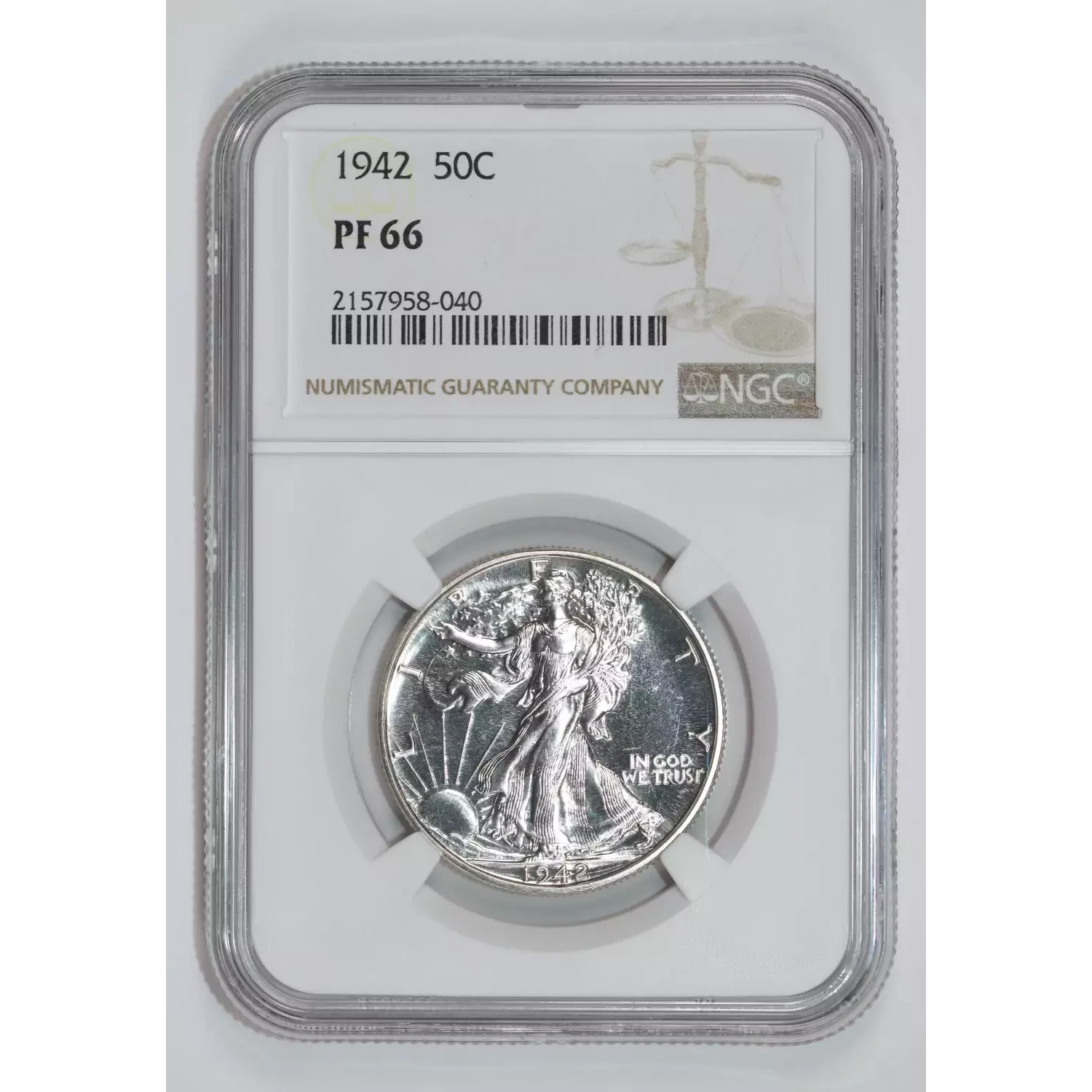1942 PROOF WALKING LIBERTY HALF DOLLAR NGC PR66 - PQ, WHITE COIN!